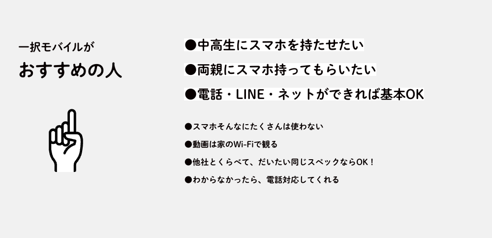一択モバイルは、電話とLINEができれば基本OKの人向けの格安モバイルです。