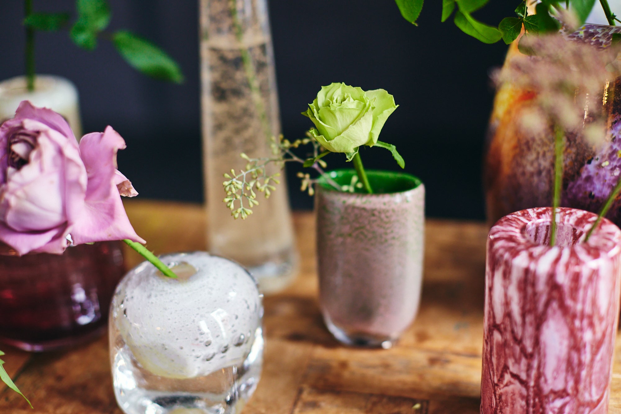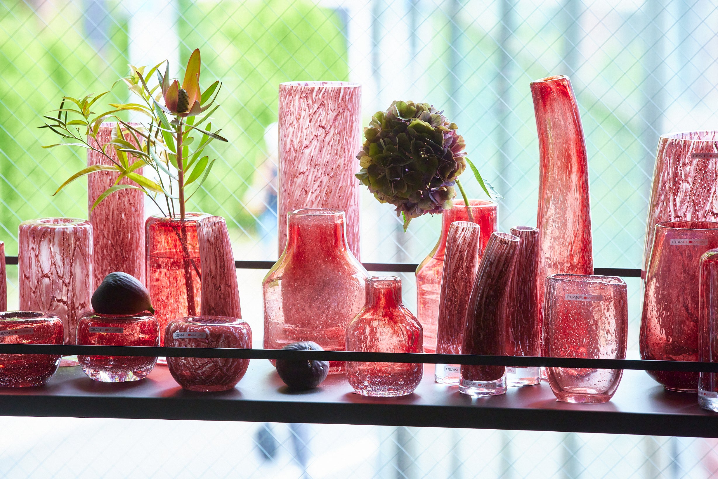 古くからガラス生産が盛んなベルギーで、古典的な吹きガラスの製法を用いて丁寧に手作りされたフラワーベースは、ぽってりとしたフォルムと、モダンでありながら思わず手に取りたくなるような温かみのある表情が特徴。気泡の出方や色味がひとつひとつ異なるのも魅力です。熟練の技術と情熱は、2人の息子と娘に受け継がれ、数々の新作が生み出されています。