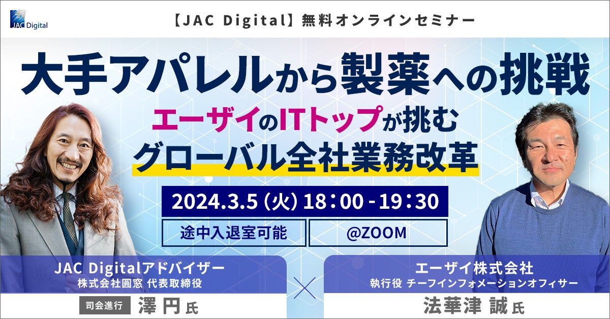 【3月5日開催】大手アパレルから製薬への挑戦〜 エーザイのITトップが挑むグローバル全社業務改革 〜(オンラインセミナー)