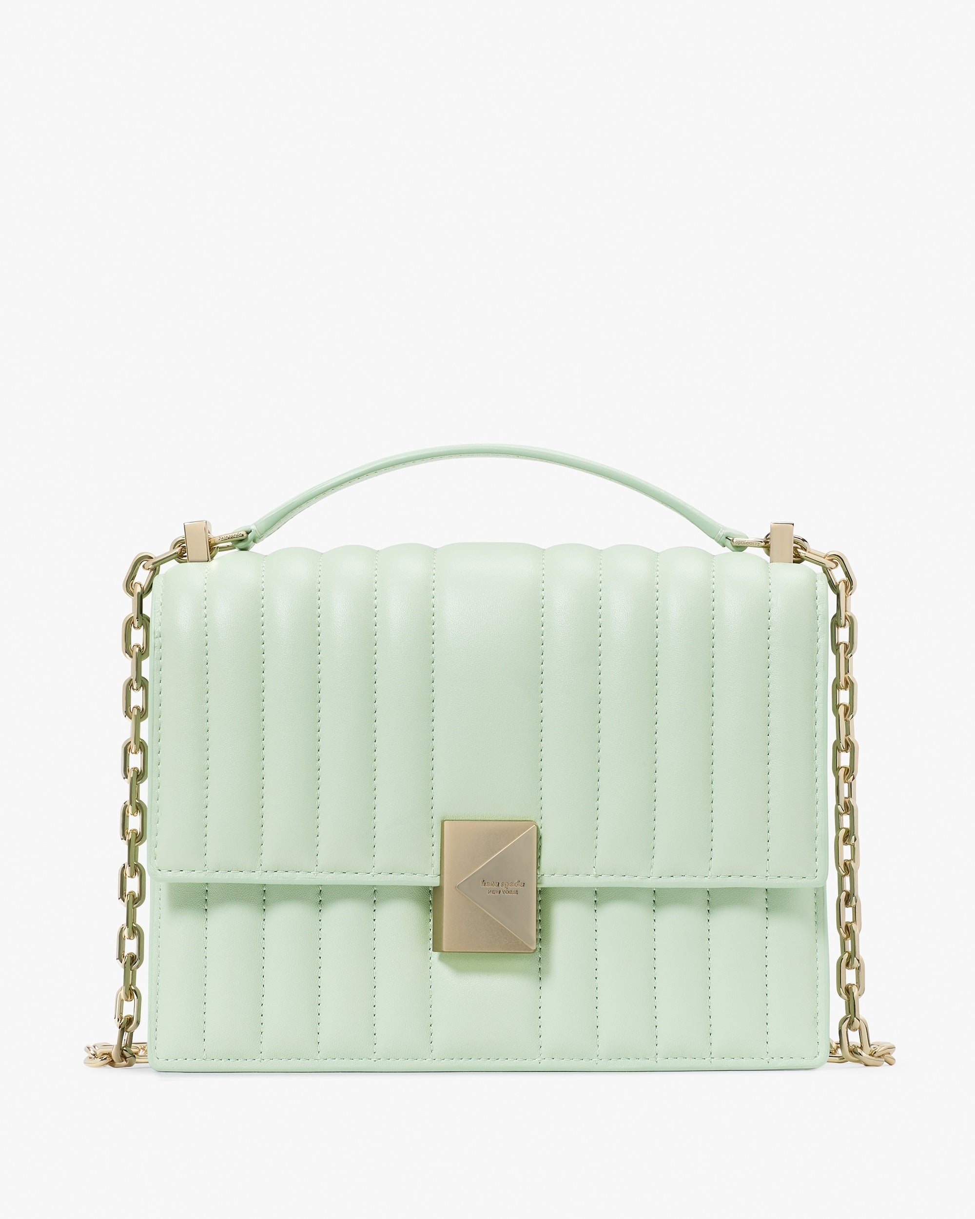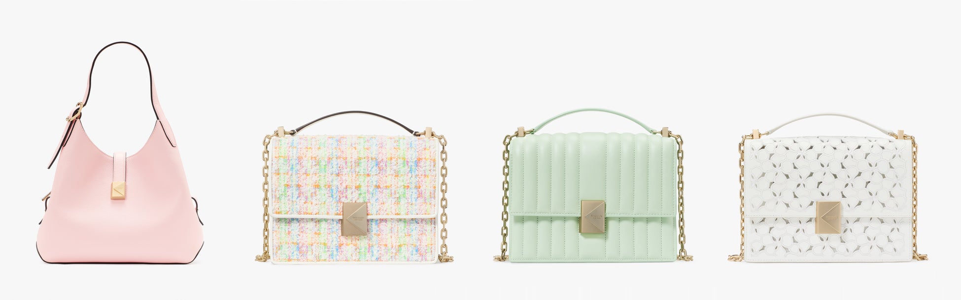 フェミニンでコンテンポラリー、そしてジョイフルというブランド独自の視点を届けるケイト・スペード ニューヨークの最新コレクションを紹介するショートムービーでは、アイコンバッグの「デコ」がフィーチャーされています。ケイト・スペード ニューヨークの新アイコンバッグとして、昨秋に初登場した「デコ」は、クラフツマンシップとブランドのDNAが融合し、デザイン性と機能性を兼ね備えたハンドバッググループです。ミニマルなデザインに「K」の文字をあしらった幾何学的なアール・デコ調の留め具が特徴の「デコ」は、今シーズンは、ミディアムクロスボディトートやチェーンショルダーなどの全5スタイルが、リュクスな質感のぺブルレザーに加え、キルトステッチやアイレット刺繍を施したスムースレザー、春らしい柔らかなパステルカラーのツイードなどバリエーション豊かに登場します。