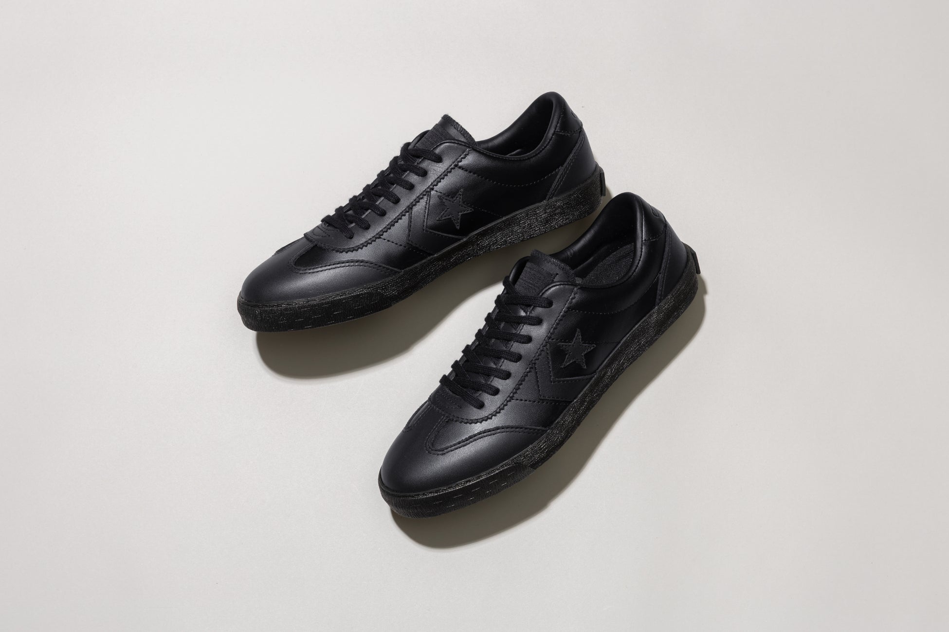 「オールスター スクエアトウ」の直営店限定カラー。全体をオールブラックでまとめ、ホワイトステッチを効かせることでミニマルに仕上げたデザイン。レザーシューズのような端正な佇まいと、スニーカーらしい履き心地のよさにこだわった一足。ホワイトのコットンのスペアシューレースが付属。