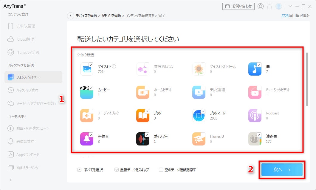 AnyTransを利用すると、個別のデータだけを古いiPhoneからiPhone 14に移行でき、新iPhoneの容量を節約できます。そして、複雑な手順がなく、数クリックでデータを新iPhoneに移行できます。