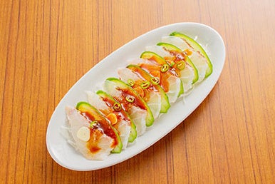 鯛を野菜でサンドしたさっぱりした韓国のお刺身はピリ辛鍋の箸休めに◎