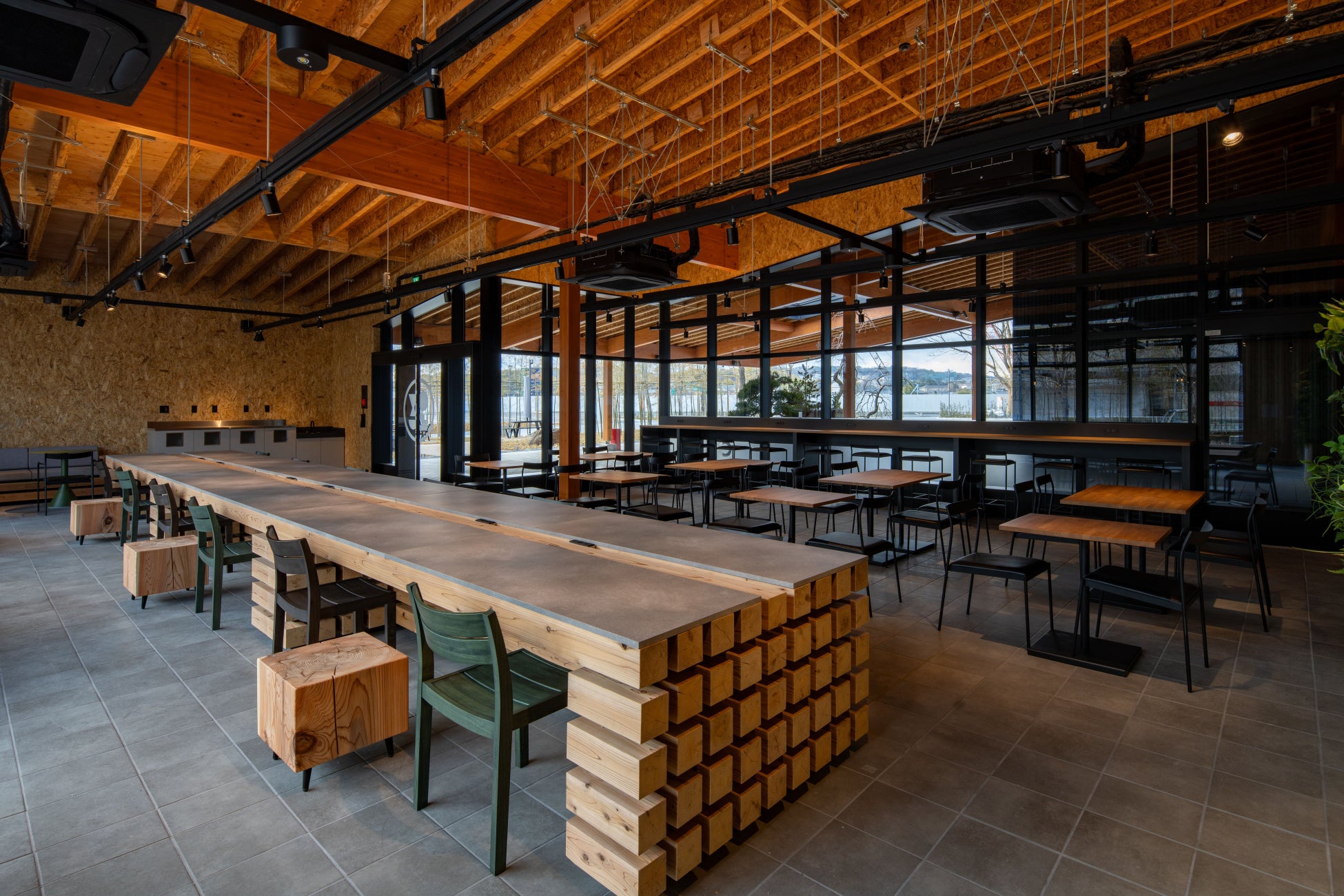 環境面では、廃材をリサイクルしたタイルなどの建材を施設各所に採用しております。また、共用棟を木造建築とすることで約71t、共用棟内のカフェテリアで京都府内の森林から伐採した木材を使用した家具を採用することで約1.9tの二酸化炭素貯蔵※2を実現するなど、カーボンニュートラルに向けて大きく貢献する施設となっております。