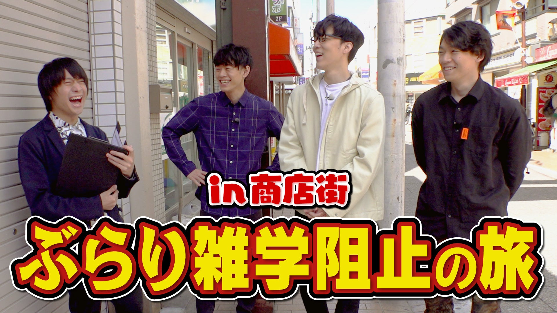 動画の舞台は商店街。QuizKnockの伊沢拓司、ふくらP、東言、山本祥彰(司会進行)が商店街で様々な店舗に立ち寄り、見つけたものをきっかけに雑学を披露していきます。誰かの雑学が言い切られる前に先回りして同じ雑学を言えたら阻止成功というルールで、最も多くの雑学を言い切ることができるのは誰なのか、勝負の行方をお楽しみください。