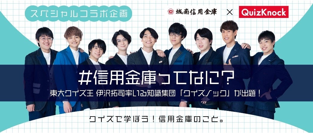 また動画公開同日より、城南信用金庫の公式Webサイトにて、スペシャルコラボ企画「#信用金庫ってなに?」がスタートしました(https://www.jsbank.co.jp/quiz/)。信用金庫と深く関わる地域のこと、信用金庫や城南信用金庫にまつわるクイズをQuizKnockが制作し、同サイトで連載形式で出題していきます。クイズを通して、信用金庫の仕組みや地域貢献の取り組みについて楽しく理解できる内容になっています。