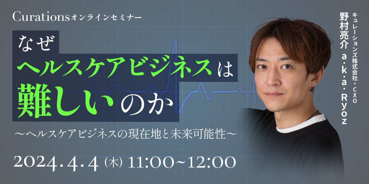 顧客企業のビジネス変革を成功に導くキュレーションズ株式会社(本社:東京都渋谷区、代表取締役社長:根本隆之、以下当社)は、『なぜヘルスケアビジネスは難しいのか〜ヘルスケアビジネスの現在地と未来可能性〜』を2024年4月4日(木)に開催いたします。