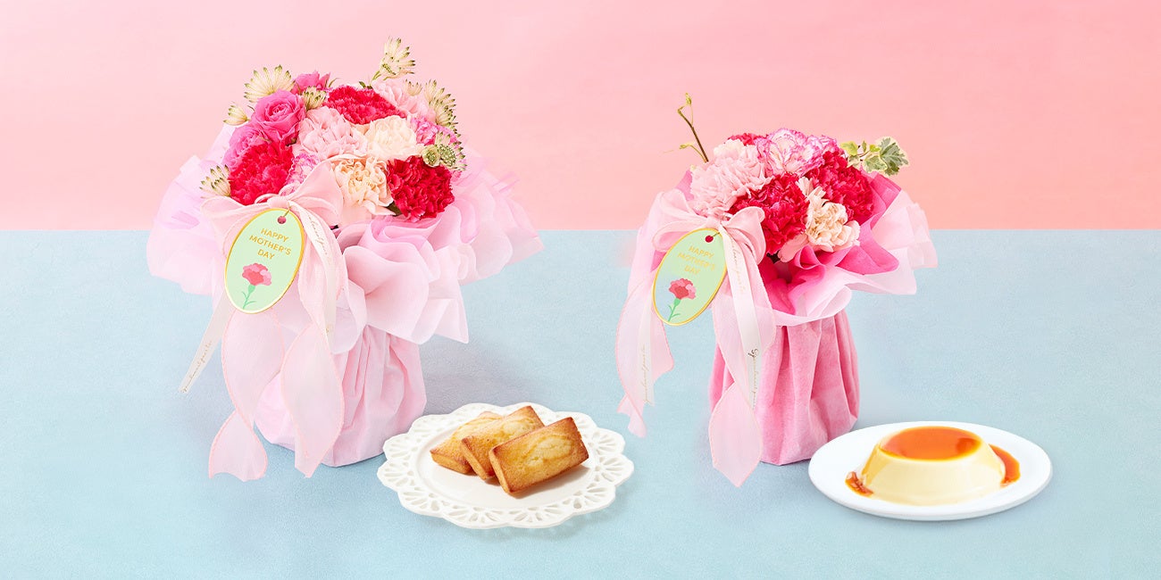 ①新商品「そのまま飾れるブーケとスイーツのギフトセット」シリーズをはじめ、感謝の気持ちが伝わる華やかな母の日ギフトが登場!