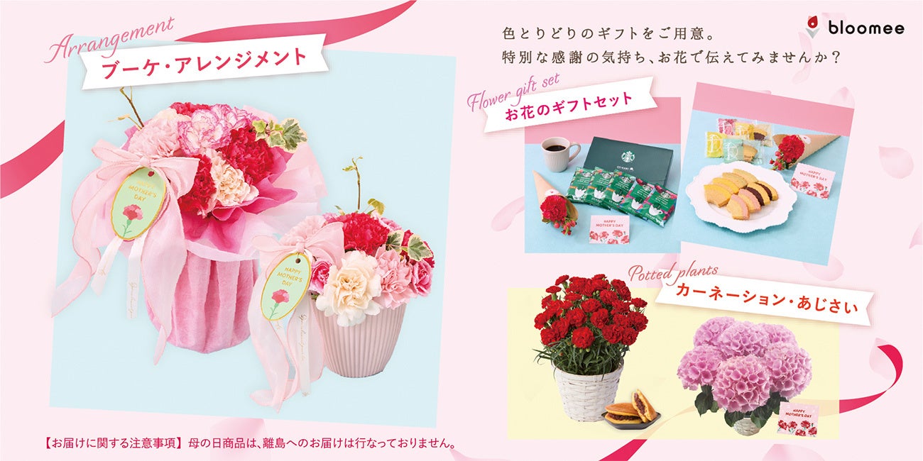 お花ブランド「ブルーミー(bloomee)」(運営会社:ユーザーライク株式会社 代表取締役CEO:武井亮太)は、今年の母の日(5月11日)に向けた「母の日フェア」を開催します。