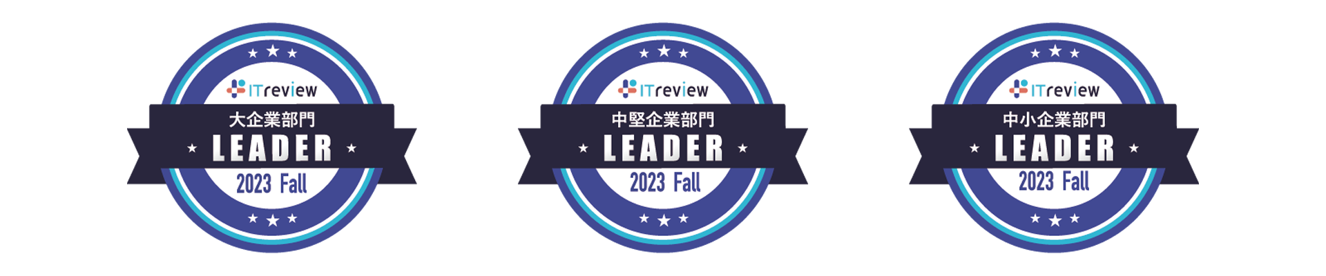 「ITreview Grid Award 2023 Fall」では、ITreviewに集まった約11.5万件のレビューをもとに、顧客満足度と認知度の双方が優れた製品を「Leader」として表彰、バッジが発行されています。ITreviewのLeaderは、既に多くの利用者から支持を得ている証であり、名誉ある称号とされております。