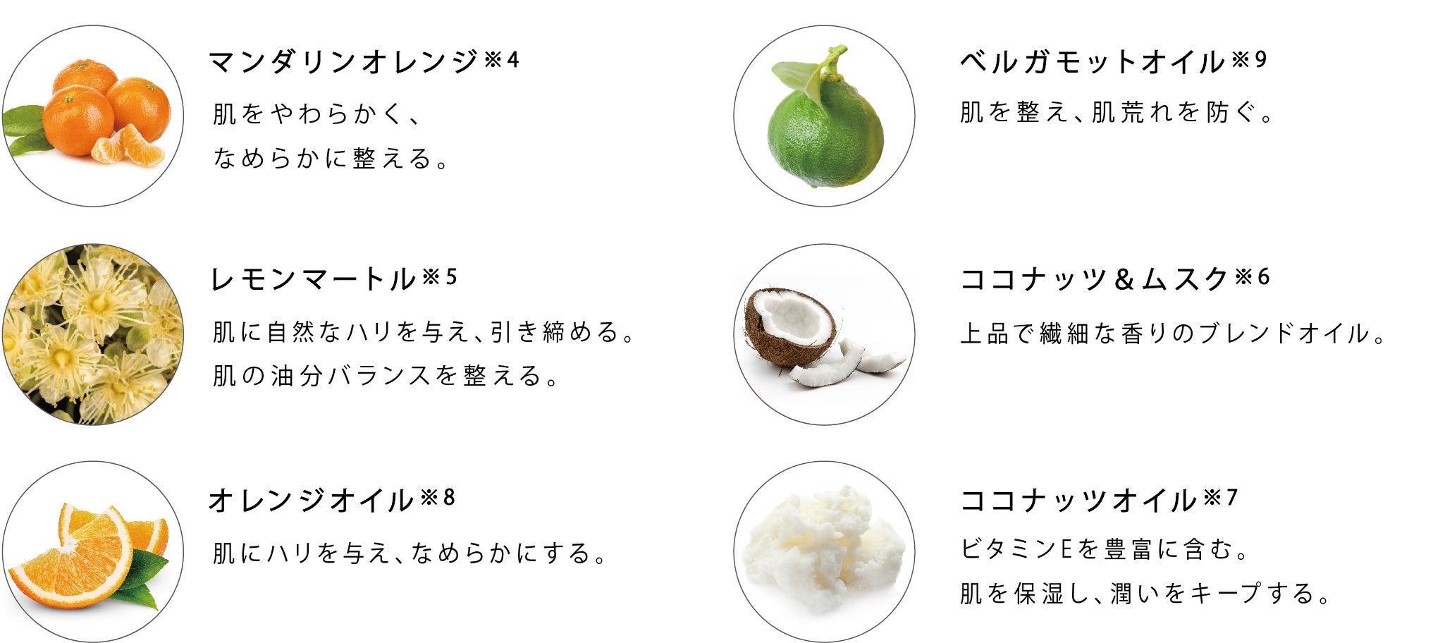 ※6 香料 ※7 ヤシ油(保湿)※8 オレンジ果皮油(保湿) ※9 ベルガモット果実油(保湿)