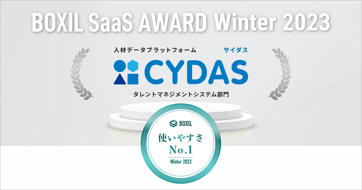 人材データプラットフォーム「CYDAS」が「BOXIL SaaS AWARD Winter 2023」タレントマネジメントシステム部門で「使いやすさNo.1」に選出