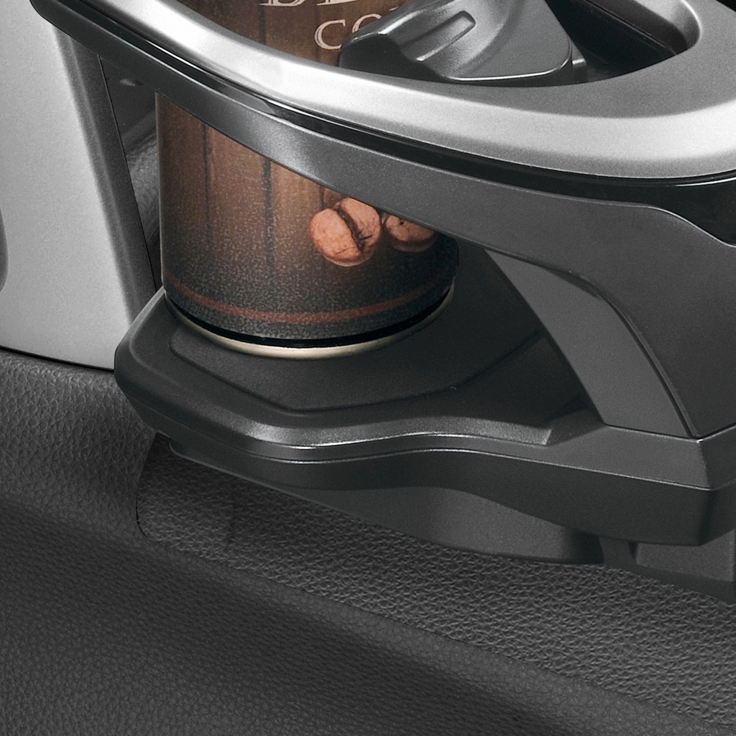 無段階で調整できる回転アームを備えました。手動で動かす無段階調整式の回転アームによって、飲み物のガタツキを抑えることができます。ドリンクホルダーの底面にはスポンジ素材のクッションを備えているので、空になった細い空き缶を置いておいても、運転中に気になるカタカタ音がしにくいので快適に過ごせます。