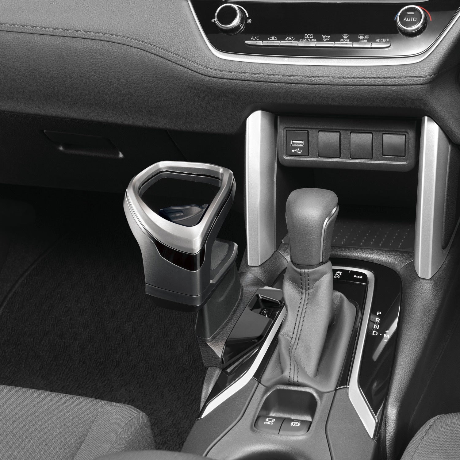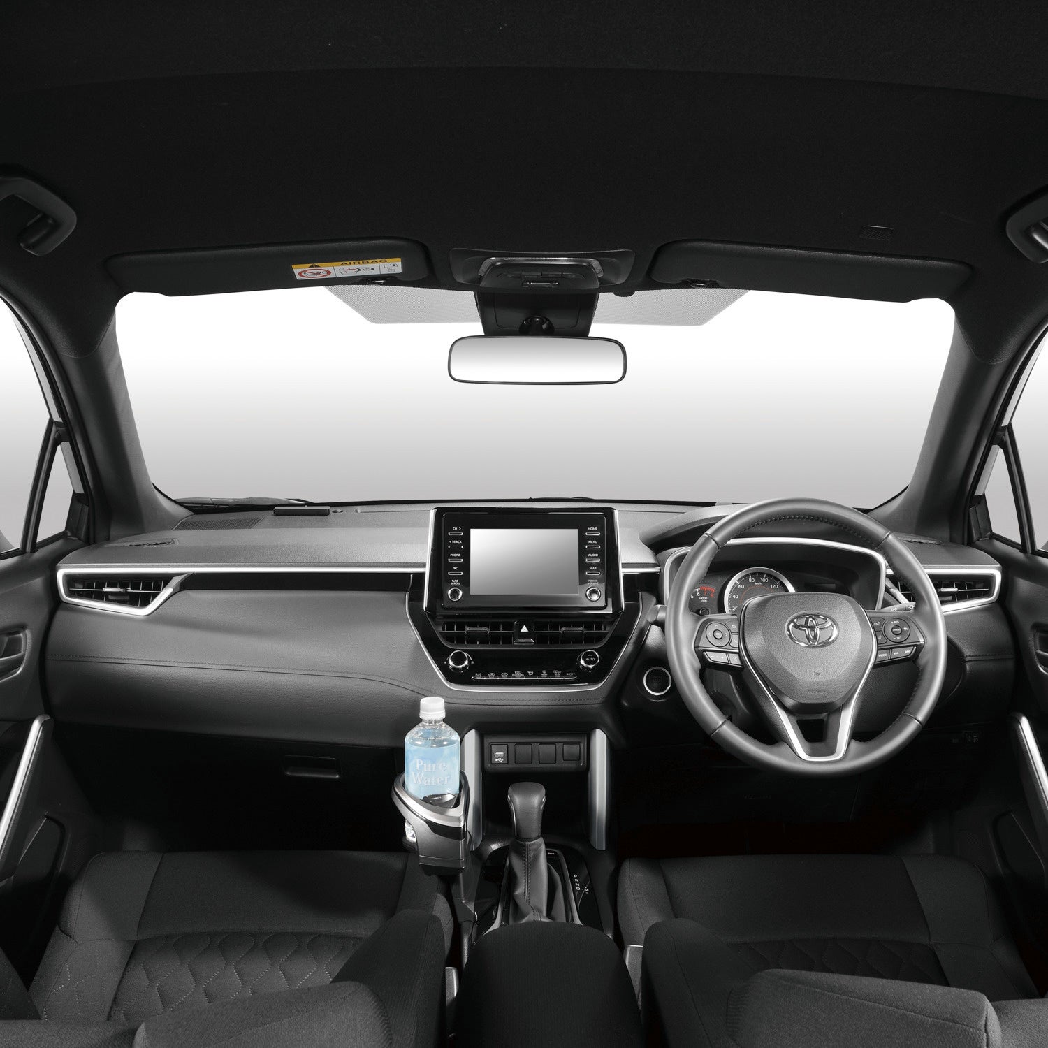 エアコンの風やミラーの視認を妨げない カローラクロス専用設計ドリンクホルダー