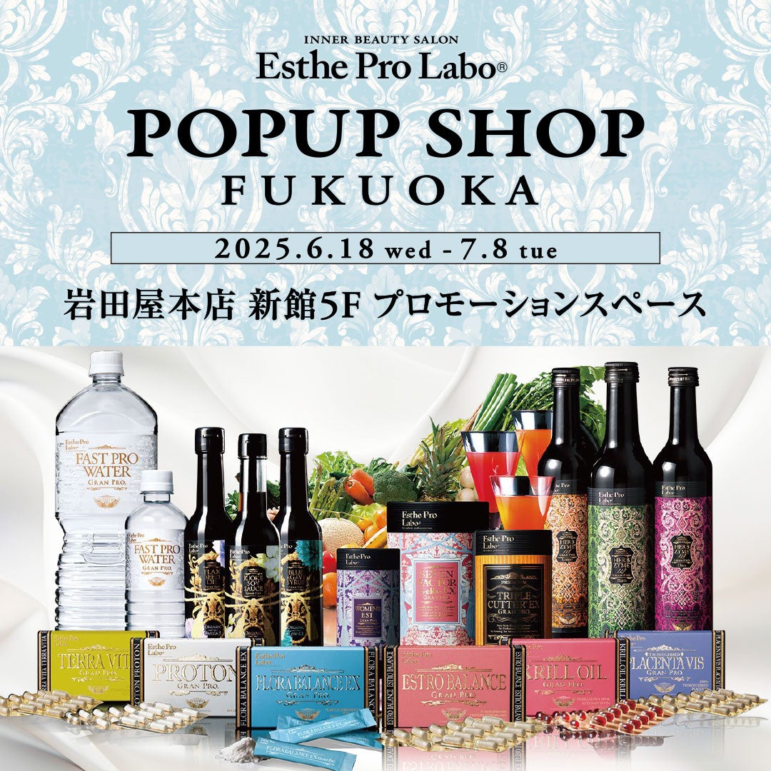 株式会社プロラボホールディングス(東京都港区、代表取締役 兼 CEO:佐々木広行)は、2025年6月18日(水)~7月8日(火)の期間、福岡 岩田屋天神 新館5Fイベントスペースにて、インナービューティサロン エステプロ・ラボ(以下、当サロン)のポップアップショップを出店いたします。