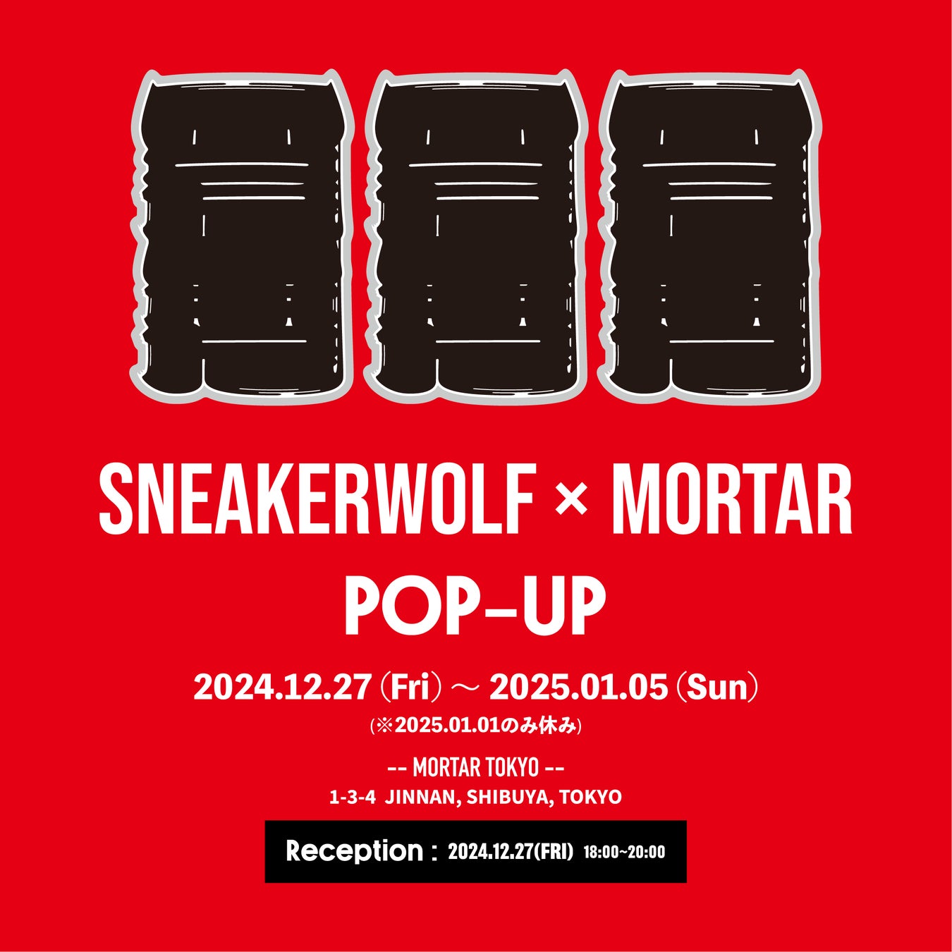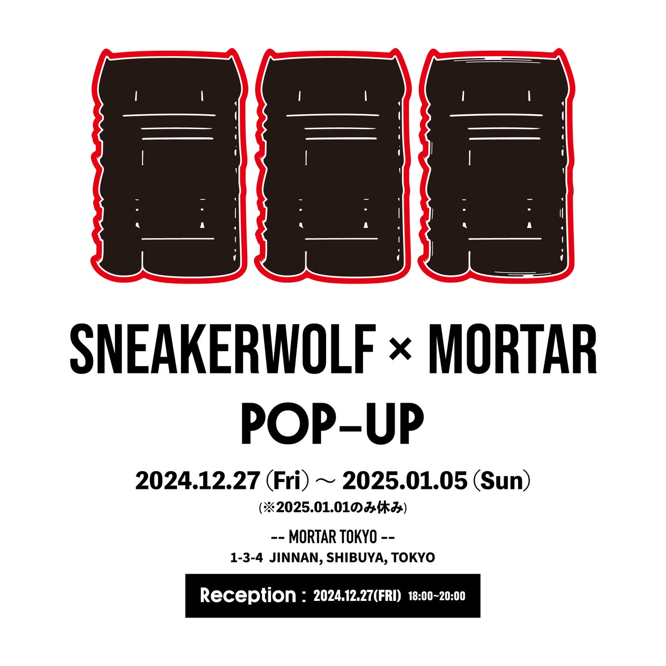 また、コラボレーションを記念してMORTAR TOKYOにてPOP UP SHOPを開催。このコラボレーションアイテムは、12月27日(金) 11:00より発売開始し18:00よりレセプションパーティも開催致します。レセプションにはSNEAKERWOLF氏も来場予定となります。FREE BEERをご用意してお待ちしておりますので皆さまお誘い合わせの上、SNEAKERWOLF氏とMORTAR TOKYOの普通では交わることのない、異色のコラボレーションをお楽しみください。