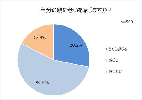 親の老いを感じている子世代は、約3割が「とても感じる」、約5割が「感じる」、合計8割以上となりました。