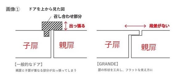 ※1:ドアとドアとが突き合わせになる部分(画像①参照)