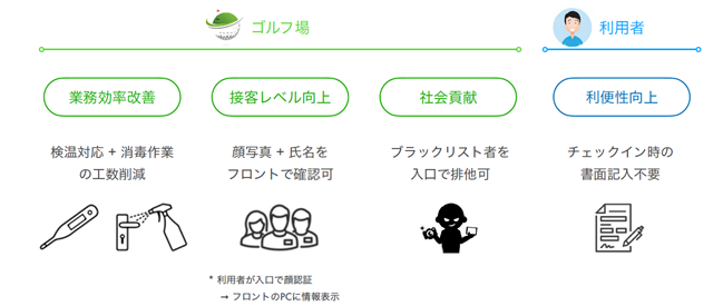 昨今、ゴルフ場では新型コロナウイルス対策としてエントランスでの来場者の検温や、記帳時のペンの消毒などに通常以上の業務負荷が生じていることが課題となっています。