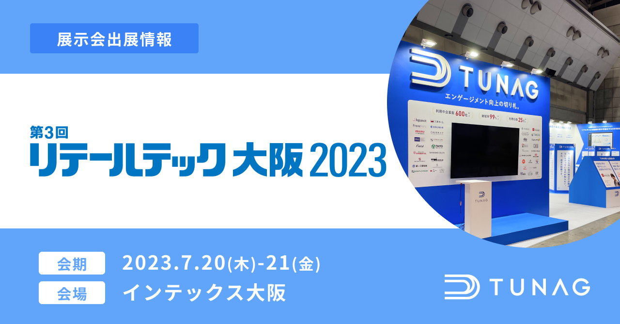 現在多くの小売業の方々にTUNAGをご利用いただき、コミュニケーション活性化、離職率の改善、生産性向上など様々な効果が現れています。ご来場いただいた方に、TUNAGの魅力をより感じられるよう、ブースには小売業界の導入事例や活用方法にも詳しいスタッフが常駐しておりますので、お気軽にブースにお立ち寄りください。