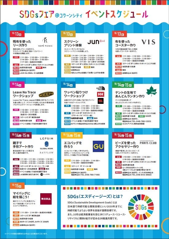コクーンシティ(さいたま新都心)埼玉県と連携した環境イベント「SDGsフェア@コクーンシティ」開催!10月13日(金)~15日(日)