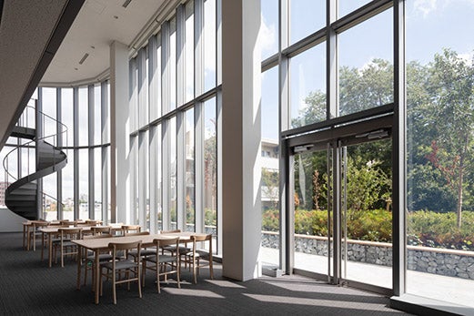 「1stRound BASE in 東大前 HiRAKU GATE」が開設される「東大前 HiRAKU GATE」は、2023年8月に竣工した新興出版社啓林館東京支社の新社屋です。その機能は社屋に留まらず、地上10階のうち3階から10階はスタートアップ企業向けに開放され、東大周辺のDeepTechスタートアップを集めたイノベーション拠点となっています。デザインは世界的建築家である安藤忠雄氏によるもので、集まり、繋がり、育むことをコンセプトに、さまざまなオフィスの人々が出会い、交流することで、「創造」「独創」「共創」が随所に生まれる「三創空間」になることを目指しており、通常のテナントスペースに留まらずそのコミュニケーションを付加価値としています。本目的を達成するため、新興出版社啓林館は建築計画の段階から東京大学および東大IPCと協議を重ね、東京都内では数少ないP2レベル(※3)の実験が行えるウエットラボ機能、大小さまざまなオフィス、そして多彩なミーティングルームを併せ持つ建築物となりました。