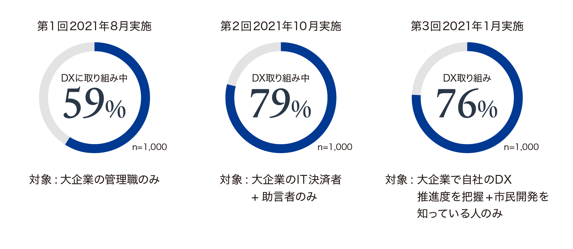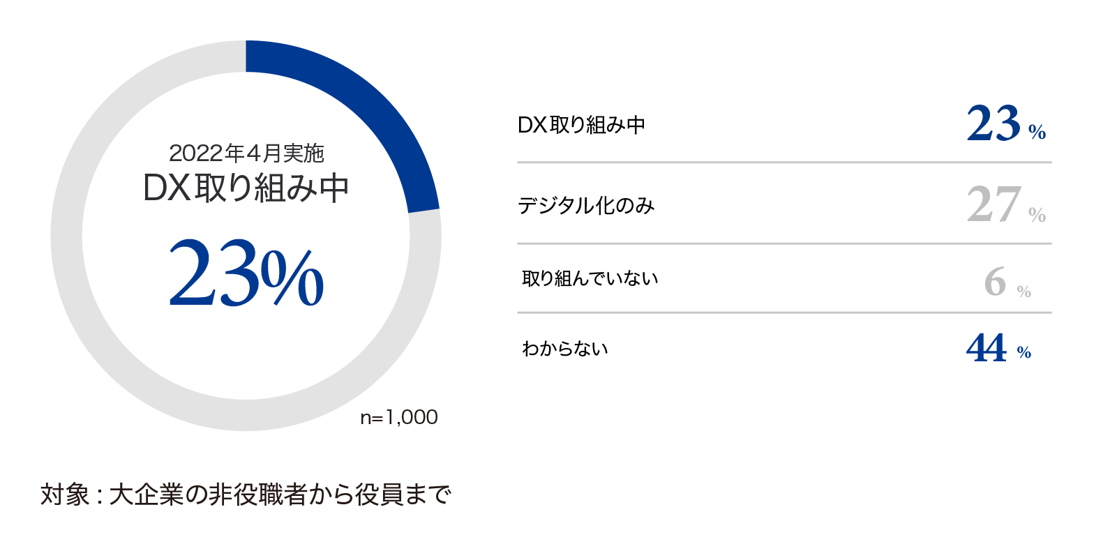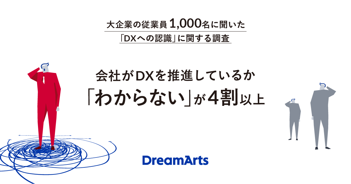 「デジタルの民主化(※1)」のリーディングカンパニー 株式会社ドリーム・アーツ(東京本社:東京都渋谷区、広島本社:広島県広島市、代表取締役社長:山本 孝昭、以下 ドリーム・アーツ)は、従業員数1,000名以上の企業に所属する従業員1,000名を対象に、「DXへの認識」に関する調査を実施しました。