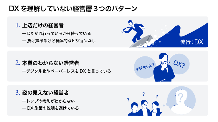 【図1:DXを理解していない経営層3つのパターン(自由記述より分析)】