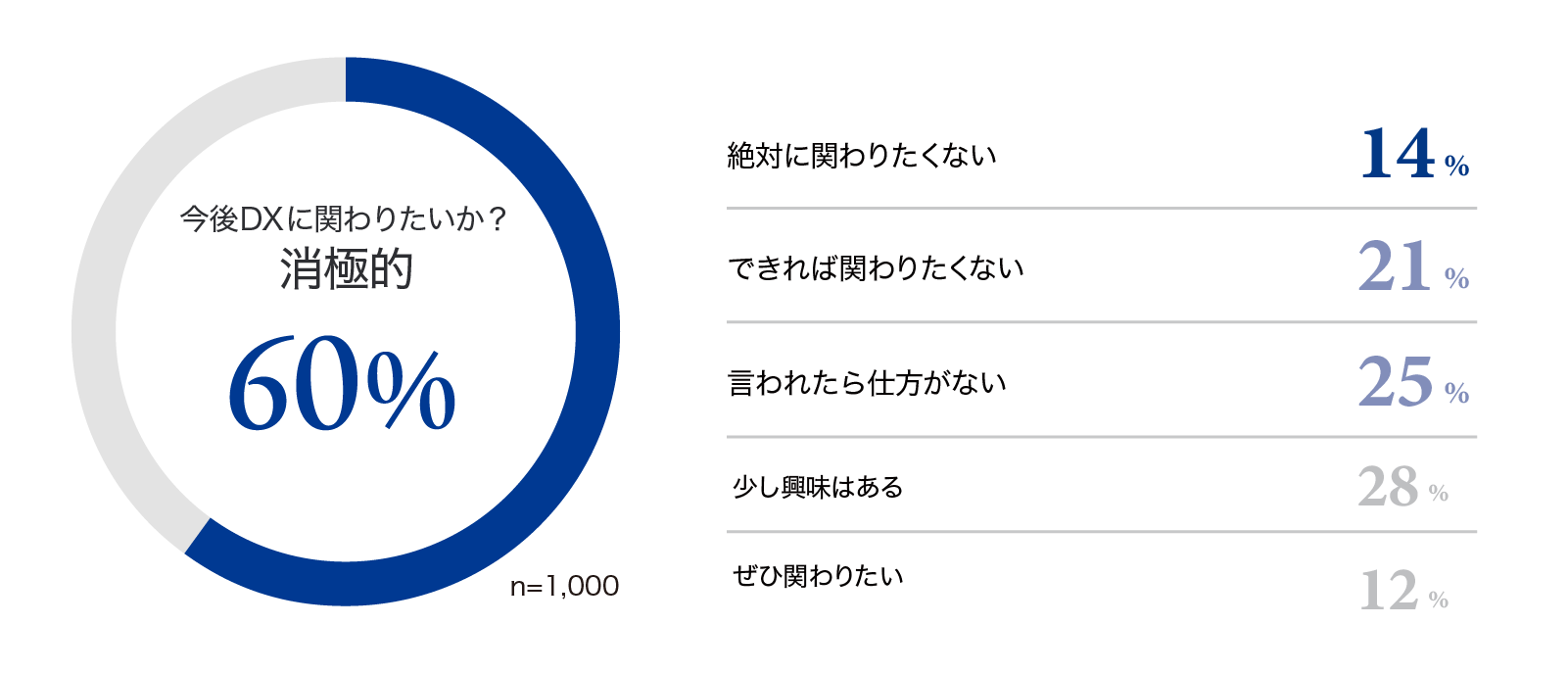 ■今後のDXへの関わりに“消極的”な人は約6割(60%)