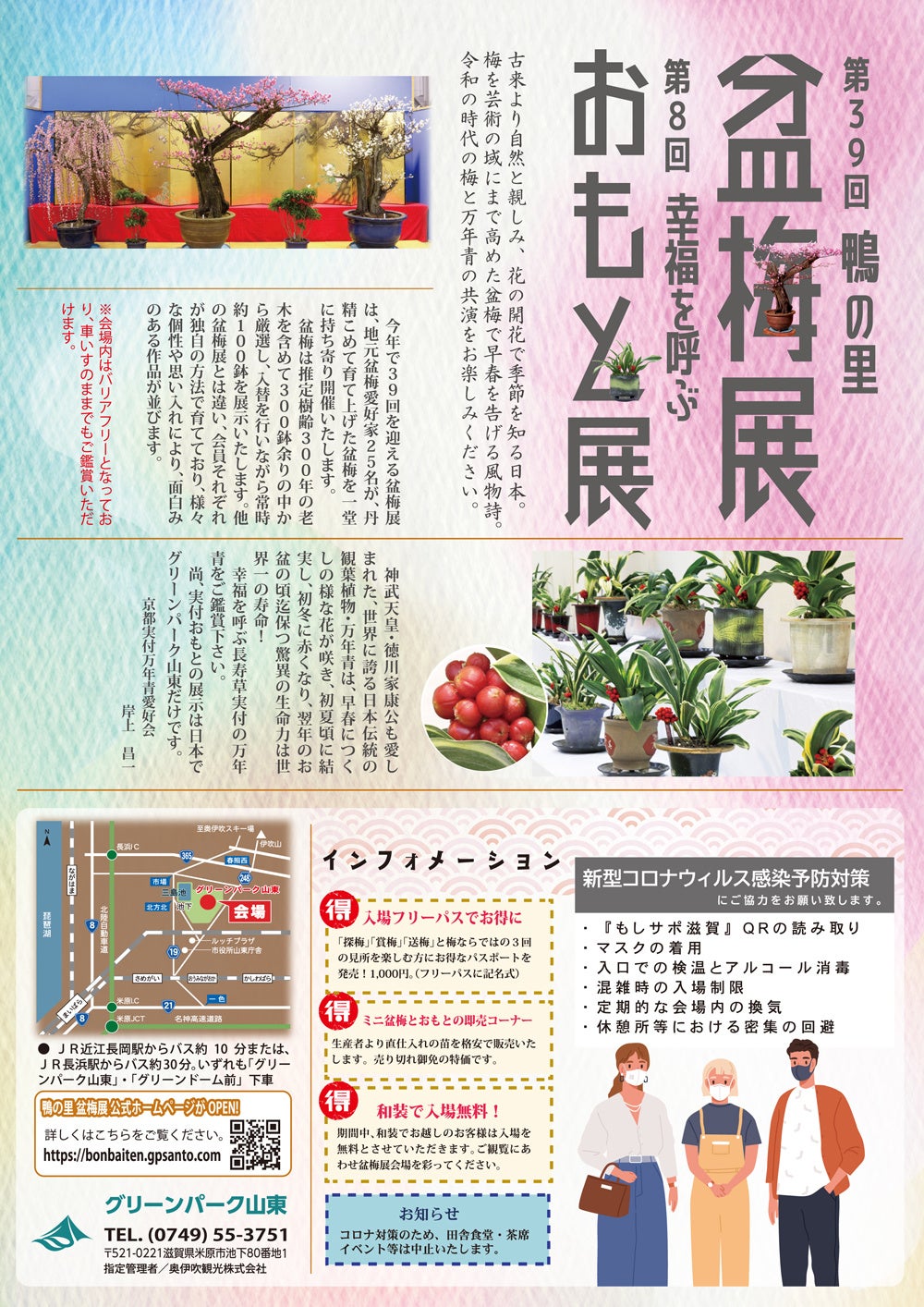 「推定樹齢300年」の大作の盆梅も展示へ!2年ぶりに開催!『鴨の里盆梅展・おもと展』早春を告げる米原の風物詩がグリーンパーク山東にて「1月29日」(土)よりオープン!