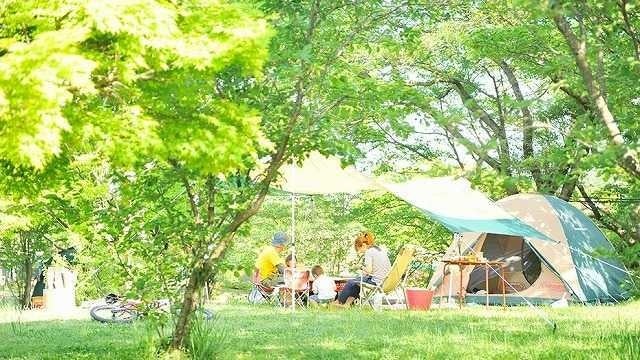 グリーンパーク山東は伊吹山を一望する自然豊かな敷地にさまざまな「レジャー&スポーツ施設を備えた複合公園」です。一角には貸し別荘風のログコテージが5棟あり、キャンプ場はオートキャンプサイト全18区画、150張まで収容可能なフリーキャンプサイトエリアからなります。フリーキャンプサイト内や天然芝のふれあい広場横では日帰りBBQもでき、手ぶら又は食材持ち込みで楽しめます。アスレチックや大型遊具もあるのでグリーンシーズンはファミリーが1日中遊べます。