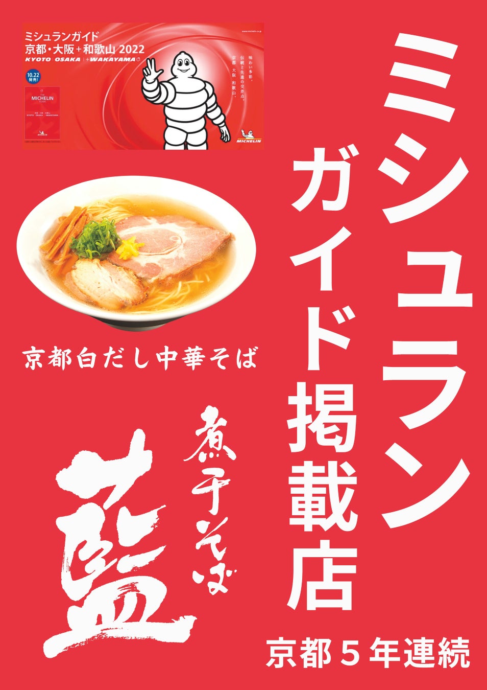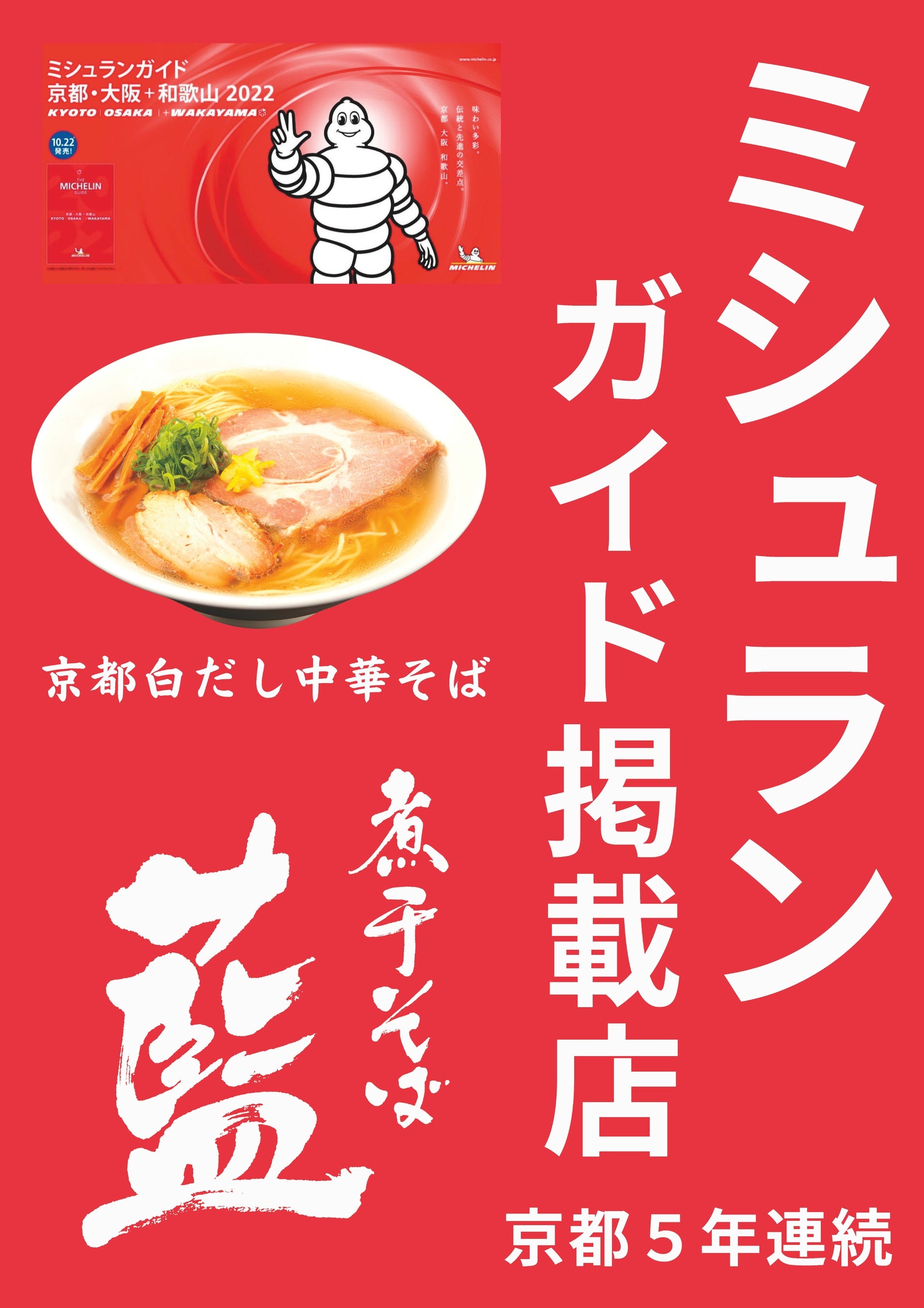 だしを極めた京都の名店「煮干そば・鶏そば 藍」はミシュランガイド京都5年連続ビブグルマン獲得店。素材本来の旨味を活かし、食材の味を引き出した味づくりを心掛けています。
