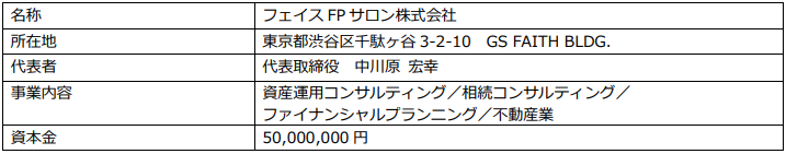 東京の城南3区エリア(世田谷区・目黒区・渋谷区)を中心に、主に新築一棟RCマンションによる不動産投資支援事業を展開する株式会社フェイスネットワーク(本社:東京都渋谷区、代表取締役社長:蜂谷二郎、以下「当社」という。)は、子会社である「フェイスFPサロン株式会社」(本社:東京都渋谷区、代表取締役:中川原宏幸、以下「フェイスFPサロン」という。)がお客様の資産形成をサポートするサービスを開始したことをお知らせいたします。