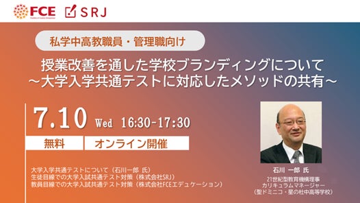また後半は、株式会社 SRJ より「生徒目線での大学入学共通テスト対策」、FCE エデュケーションより「教員目線での大学入学共通テスト対策」をテーマに情報共有をいたします。
