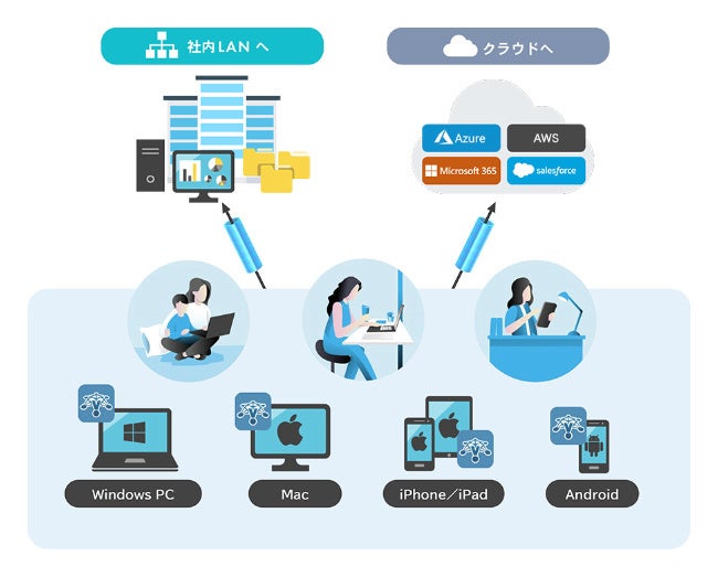 共有フォルダやリモートデスクトップ、基幹システムへワンクリックでセキュアに接続できます。