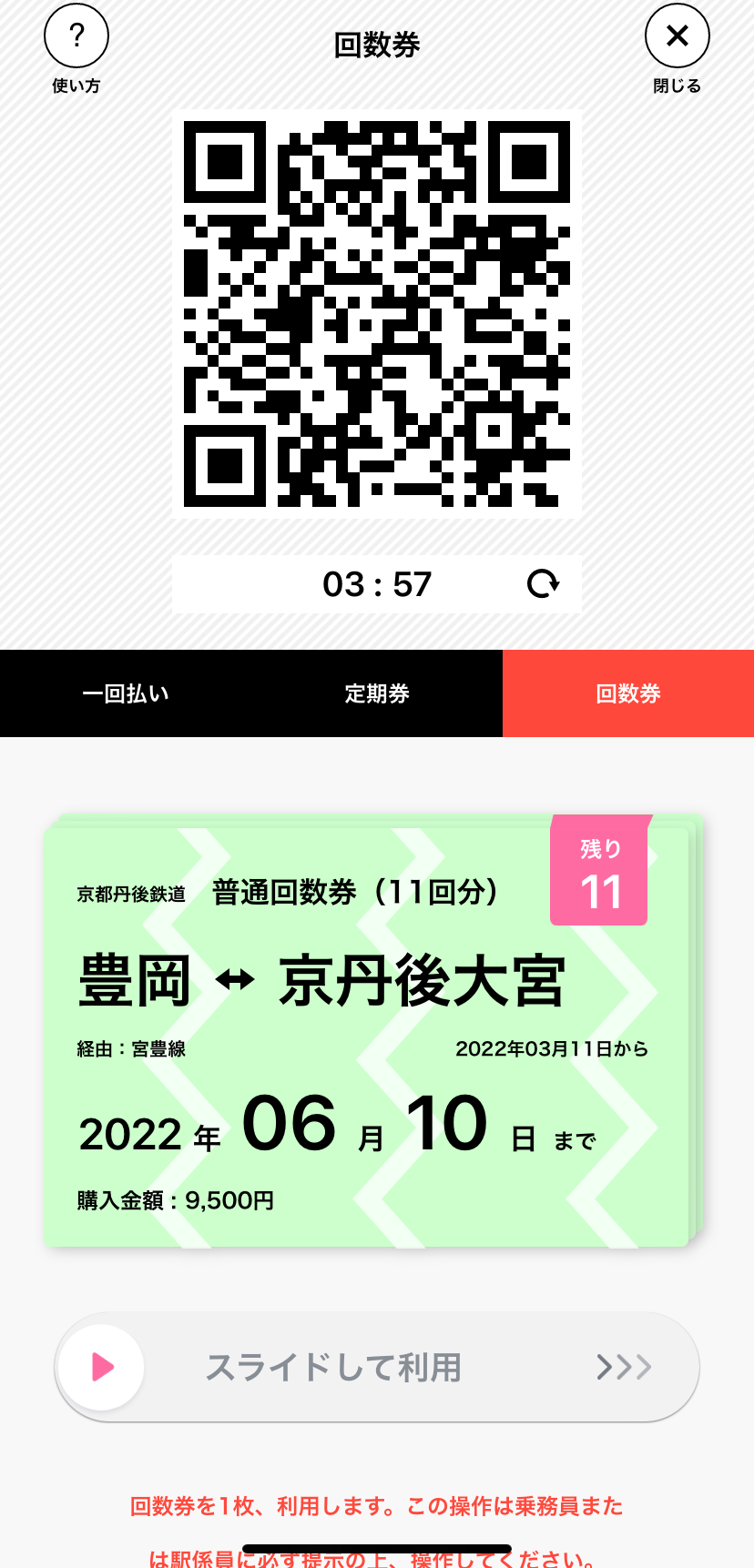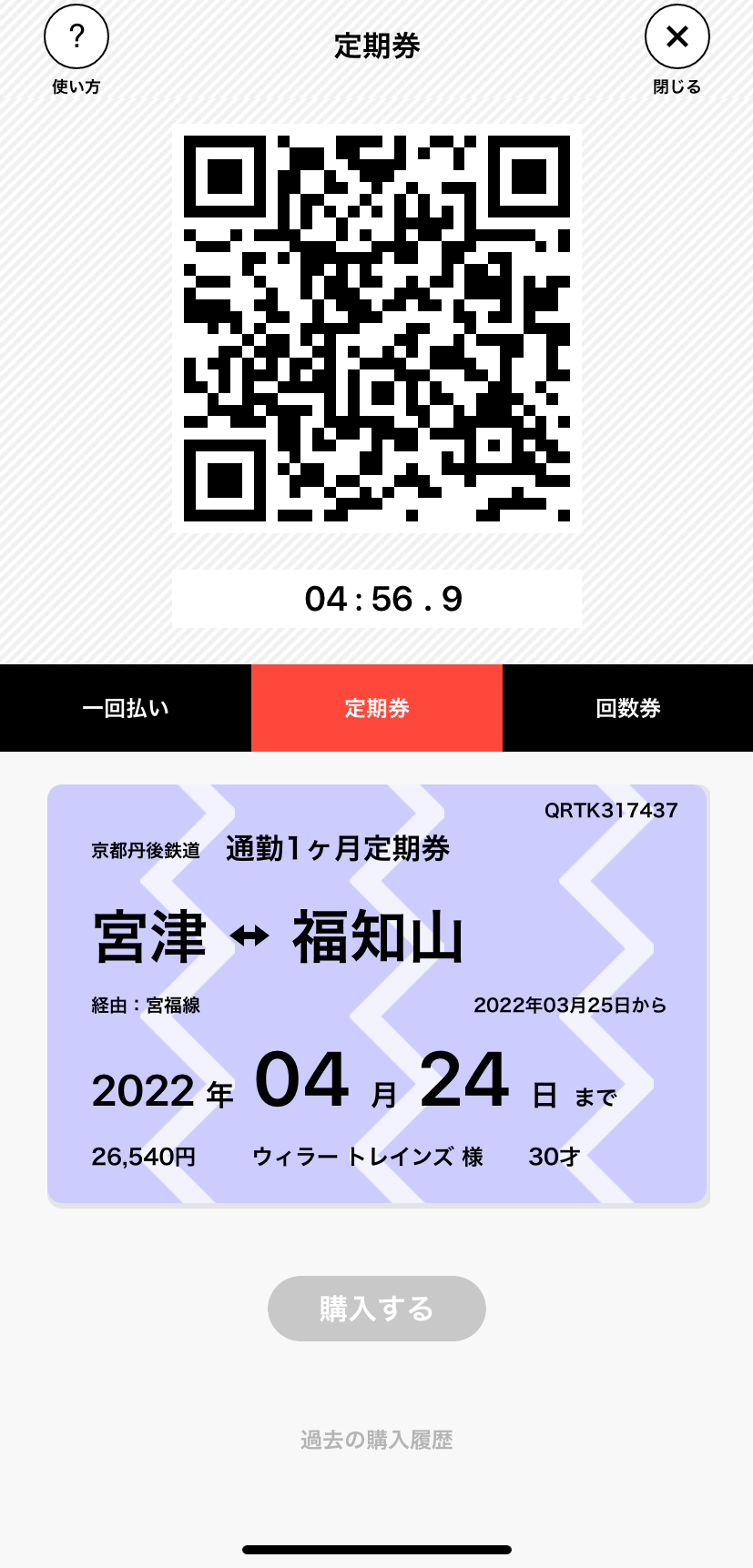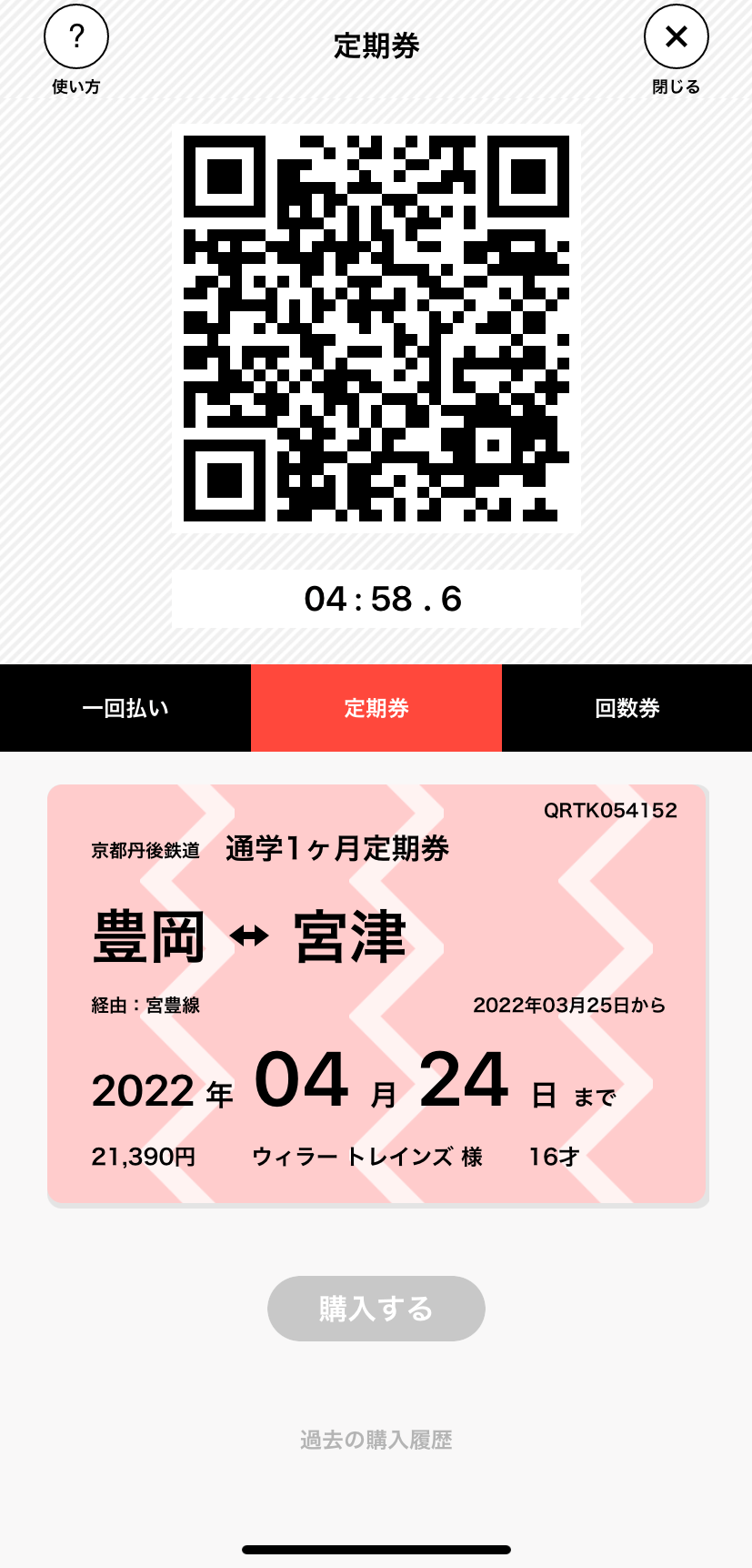 QR定期券(通勤)またはQR回数券:アプリで購入