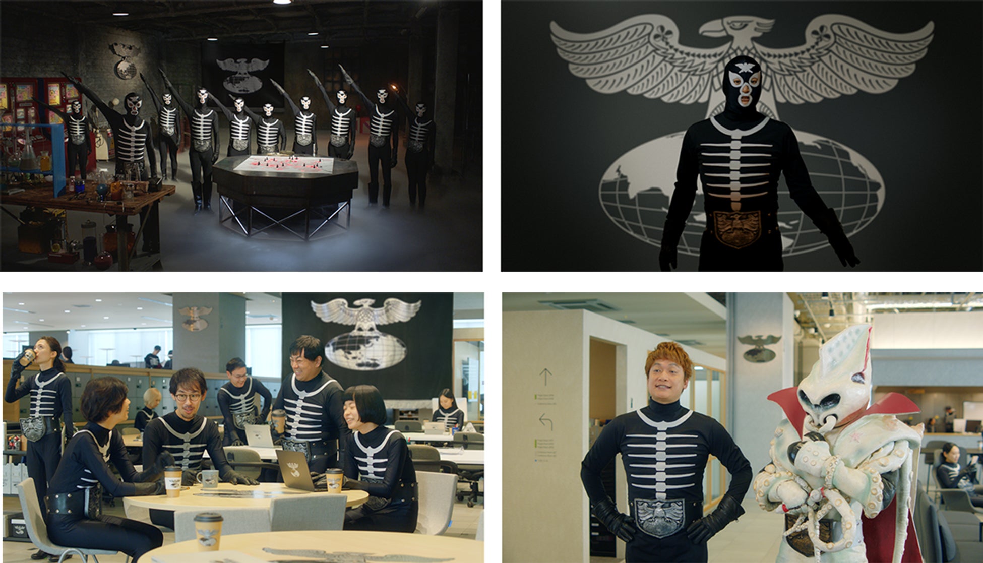 地獄の軍団 ショッカーのオフィス。どことなく雰囲気が変わったことに気づいた幹部のイカデビル。その理由を聞くと、「カオナビを導入したんです」と答える香取さん。ショッカー戦闘員それぞれの覆面を外した顔とその才能についての情報が共有されたことで、人材の最適配置が進み、組織全体のモチベーションが上がったのです。暗く抑圧的だったオフィスは、明るくオープンな雰囲気に。個性を活かした職務を担当するようになったショッカー戦闘員たちから新しい目標やアイデアが生まれてきます。戦闘員たちと語らうイカデビルも組織力の向上を実感しているようです。