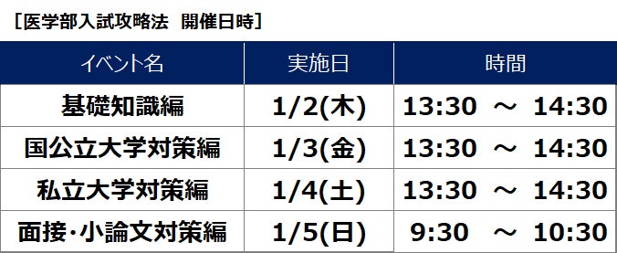 1.特別講演会 医学部入試攻略法 1月2日~5日