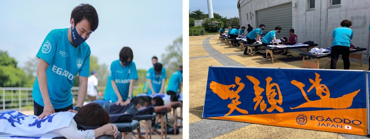 今回の「笑顔道 PRESENTS 横浜FC 2022復興支援MATCH」と「Jヴィレッジサッカー教室」を通じて多くの笑顔と元気を皆様に与え、柔道整復師・鍼灸師としての更なる可能性を見出すと共に幅広い分野においてサポートを行い、各業界の発展に貢献できるよう取り組んでまいります。