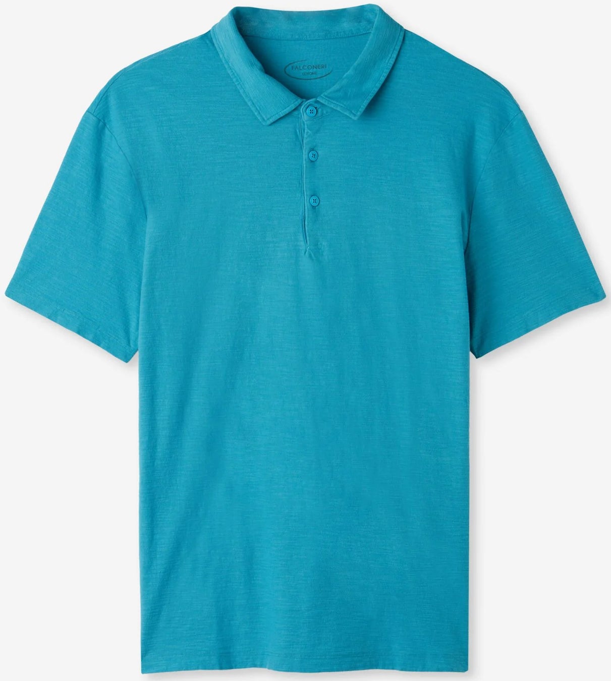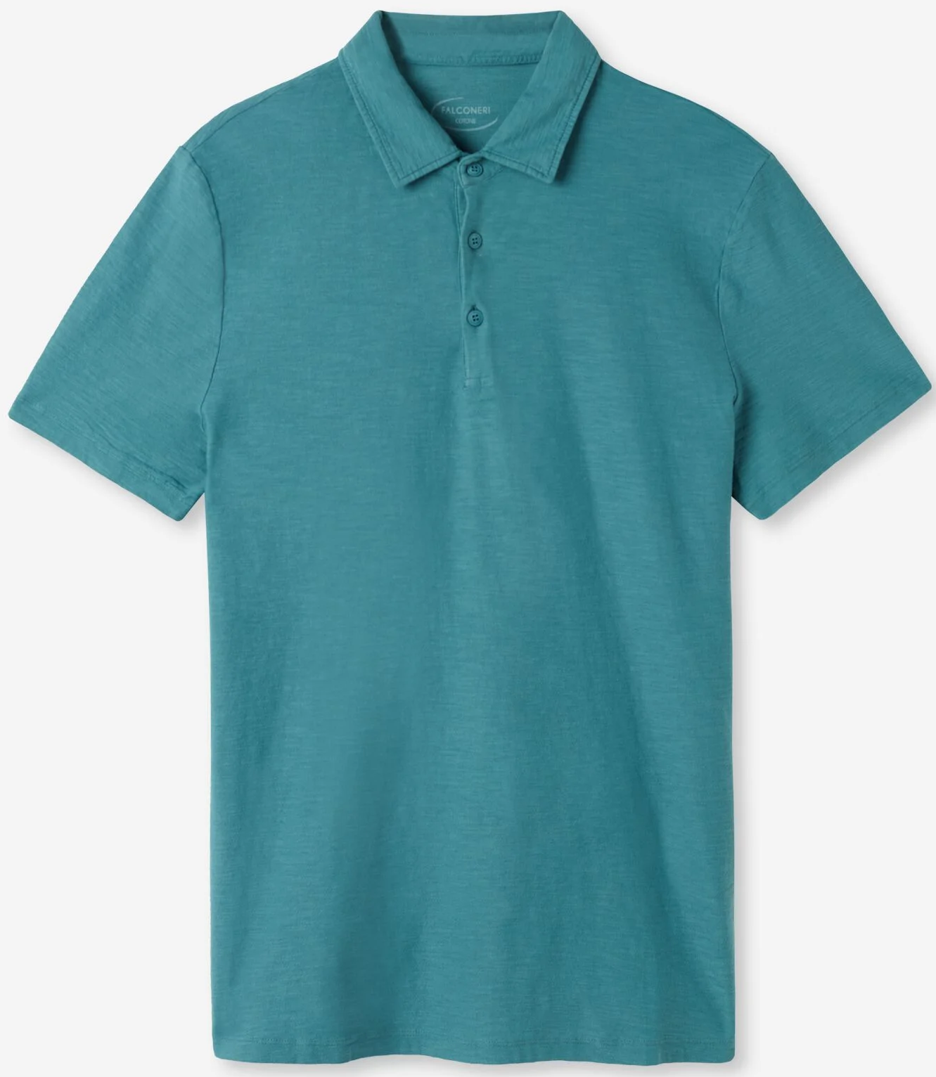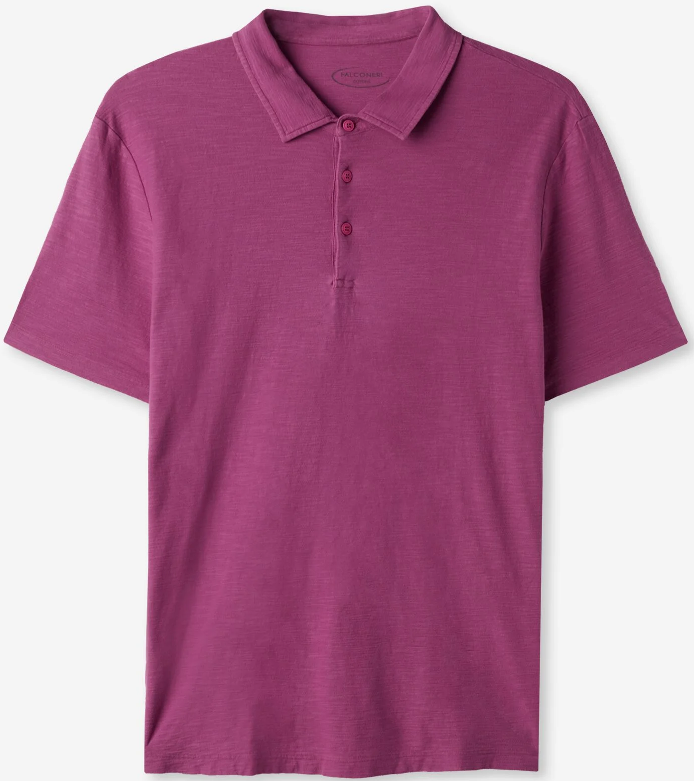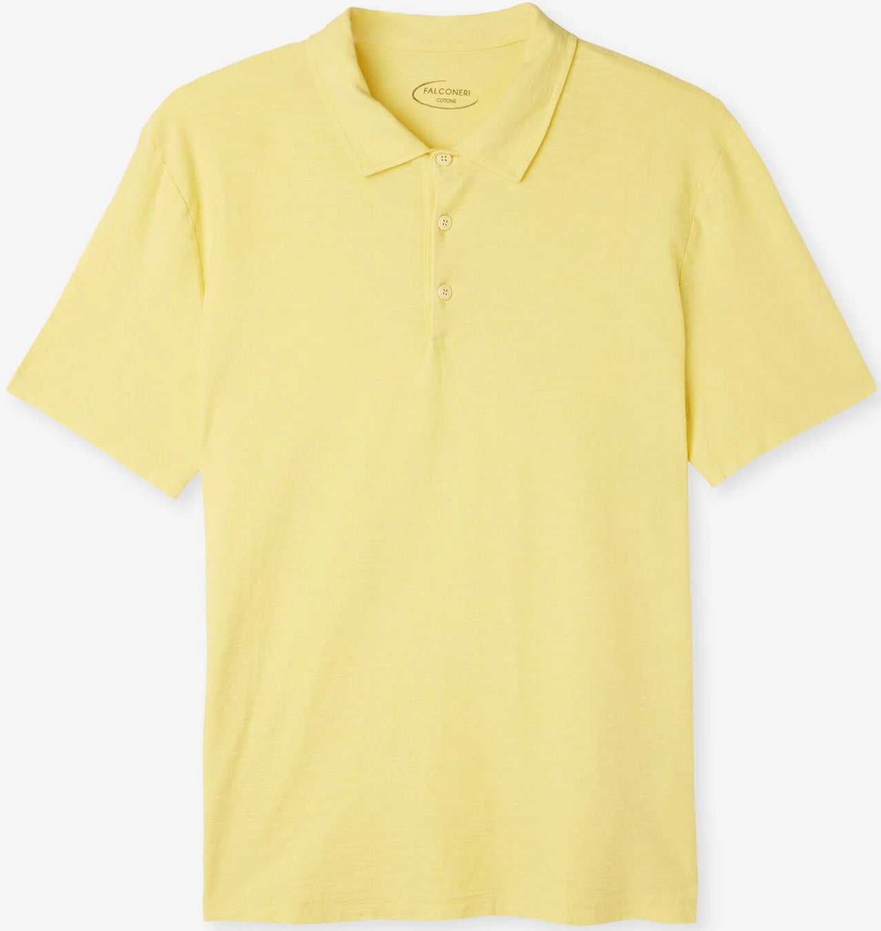 超軽量なマルフィレコットンのピケジャージー素材を使用した3つボタンの半袖ポロシャツ。カシミヤセーターで行っている後染めと同様に、コットン素材に施した特殊なツイスト加工が、不均一でムラのある染色効果を与え、コットンの風合いにヴィンテージ感を醸し出します。