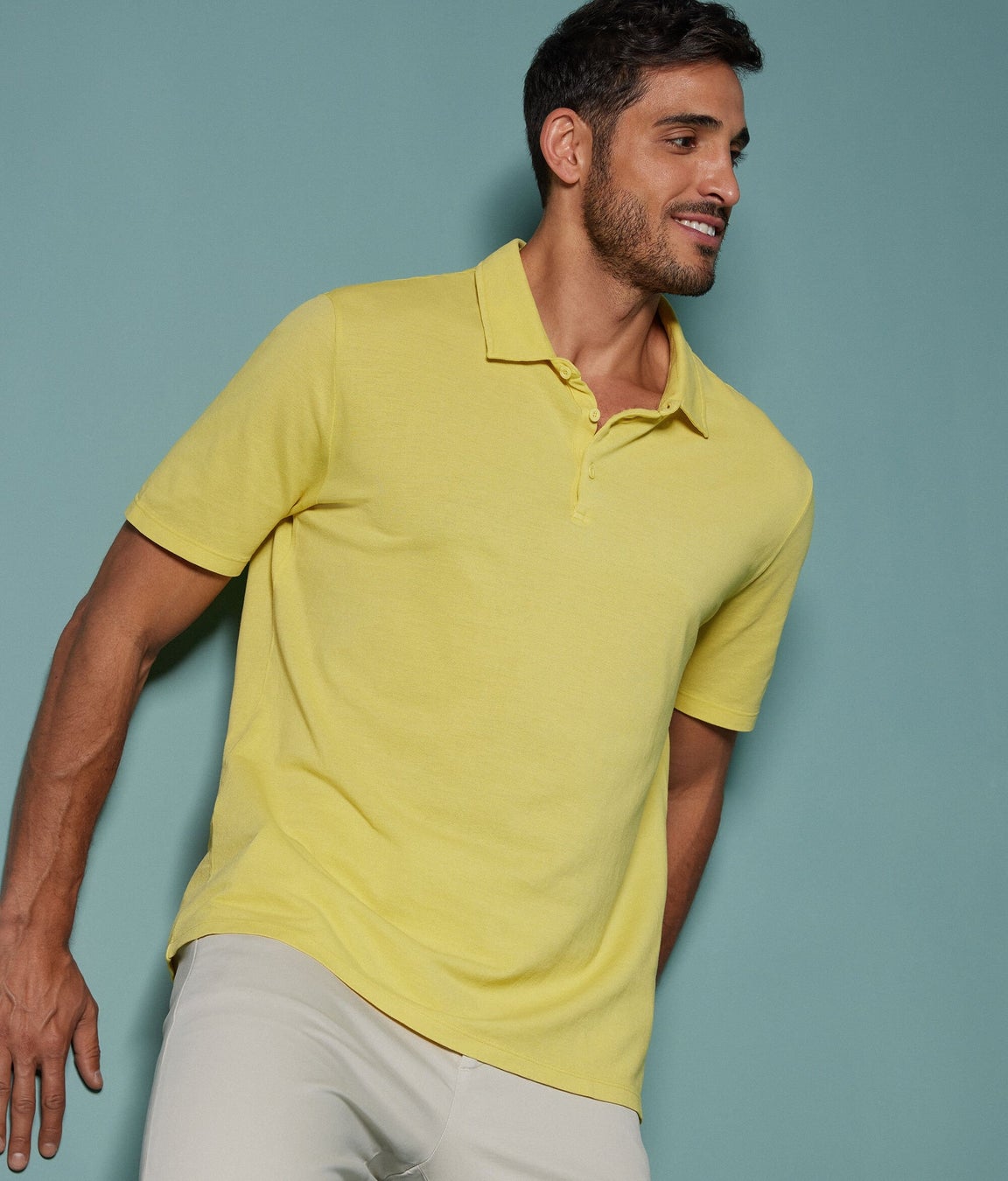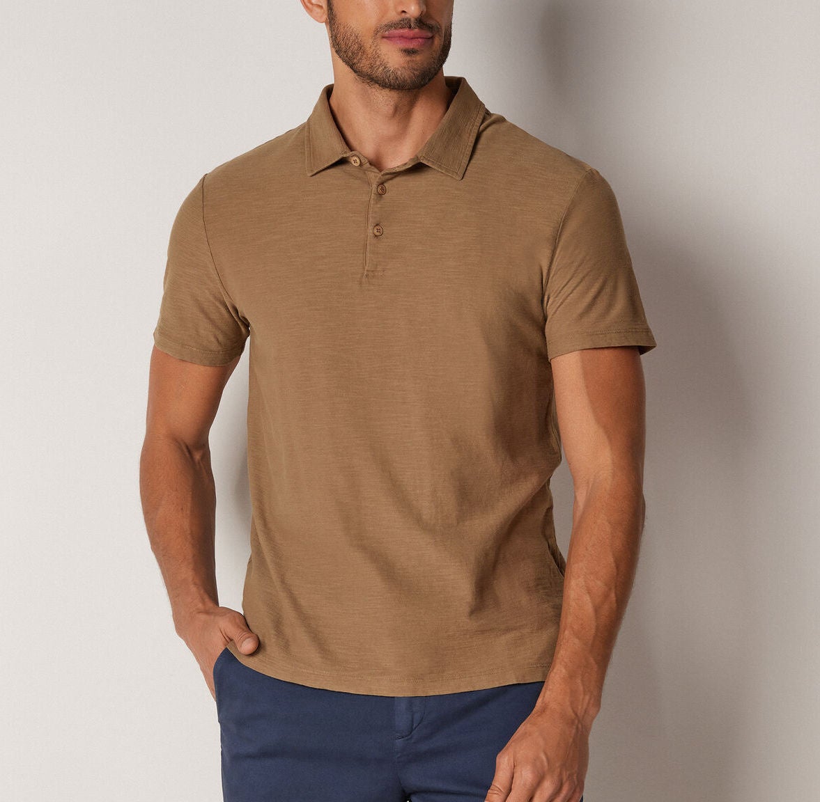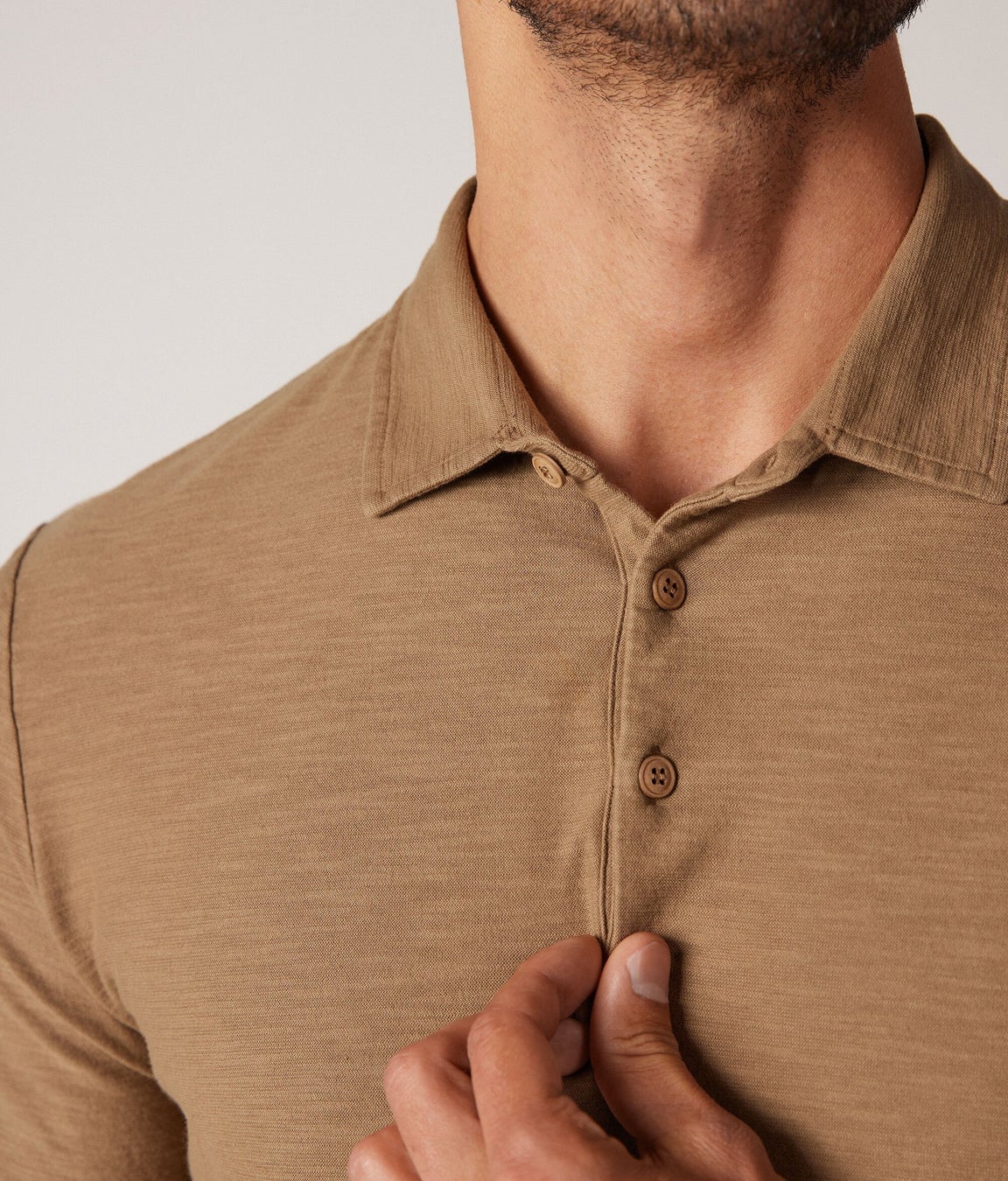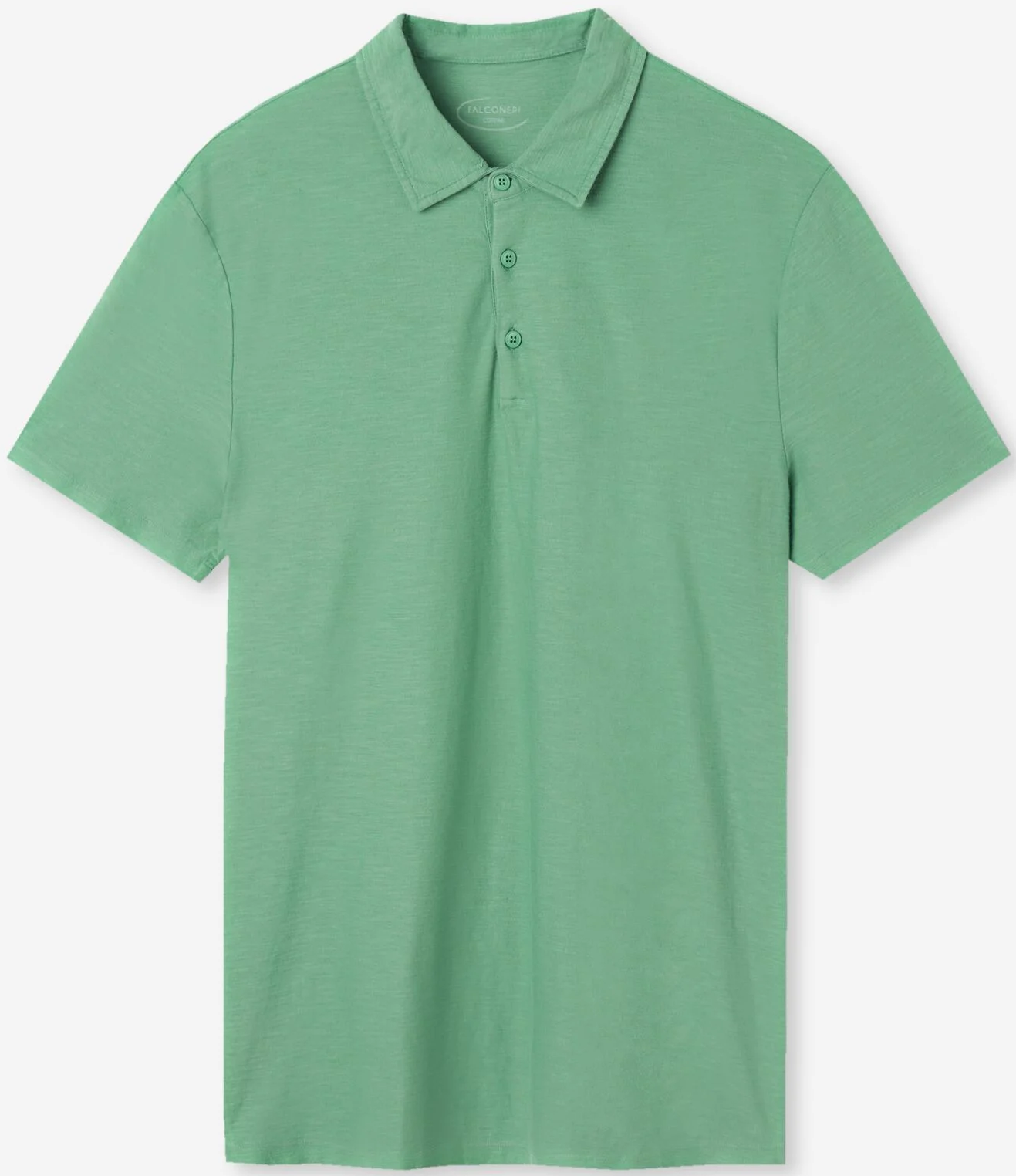 超軽量なマルフィレコットンのピケジャージー素材を使用した3つボタンの半袖ポロシャツ。カシミヤセーターで行っている後染めと同様に、コットン素材に施した特殊なツイスト加工が、不均一でムラのある染色効果を与え、コットンの風合いにヴィンテージ感を醸し出します。