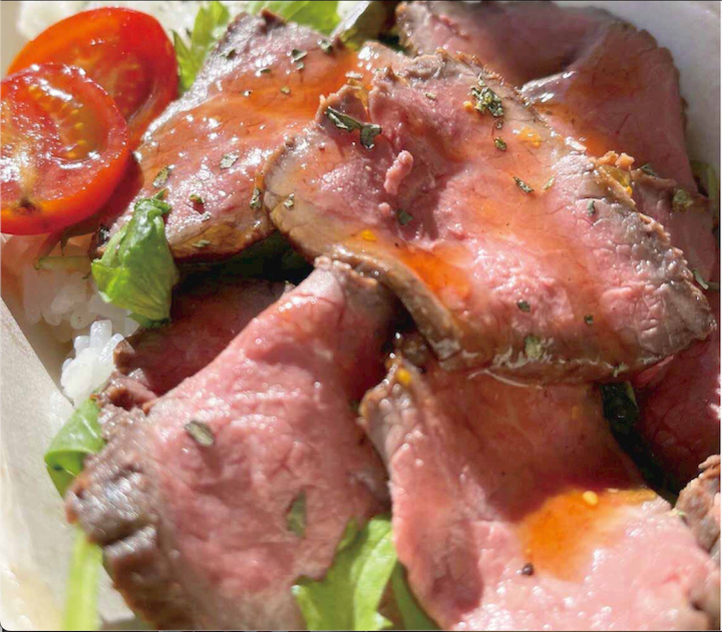 「trattorìa OGGI」は、移動式の本格イタリアンキッチンカーで、自家製ソースがたっぷりかかった「ローストビーフ丼」が特におすすめの店舗です。