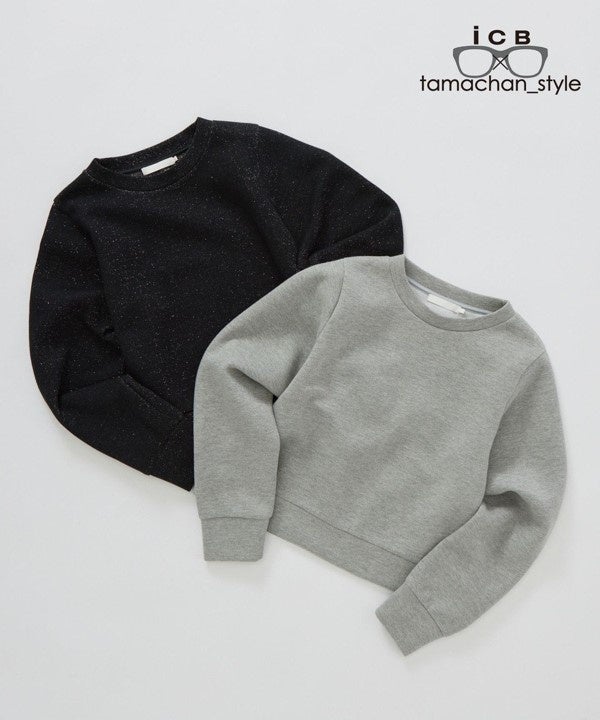 さりげないラメ感が冬のコーディネートを引き立てるクロップド丈のプルオーバー。