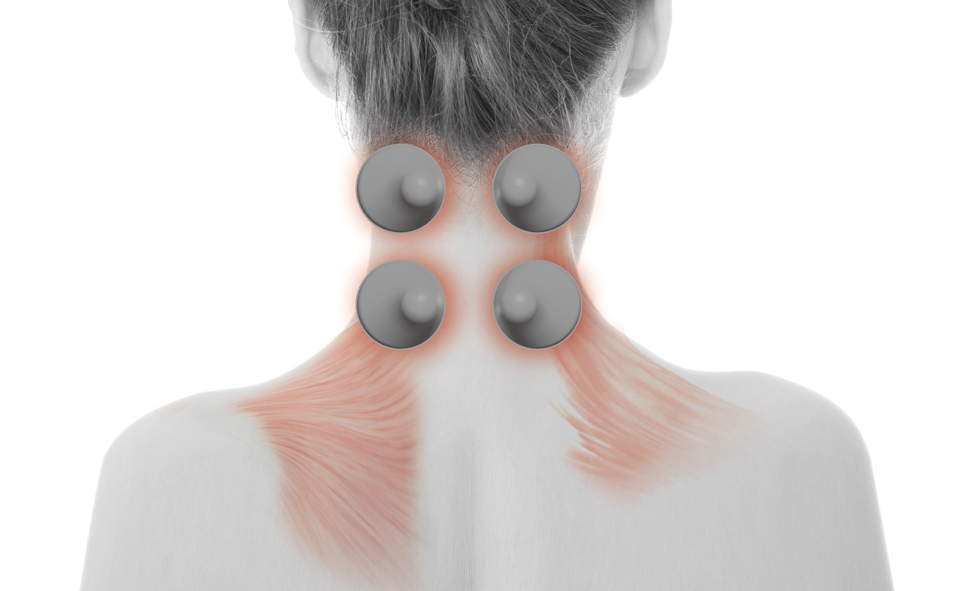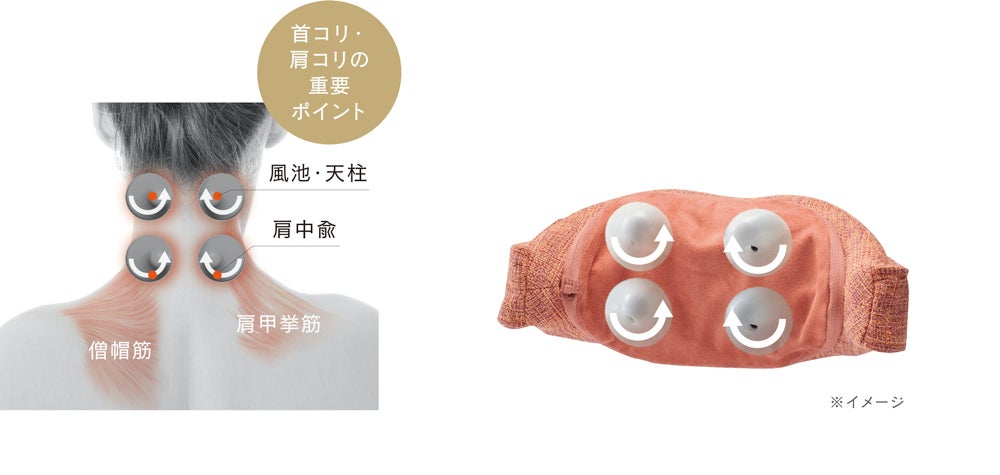 POINT1:4つのもみ玉が首筋を左右からつかむようにほぐす