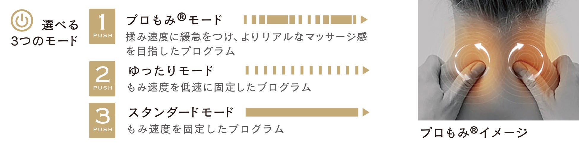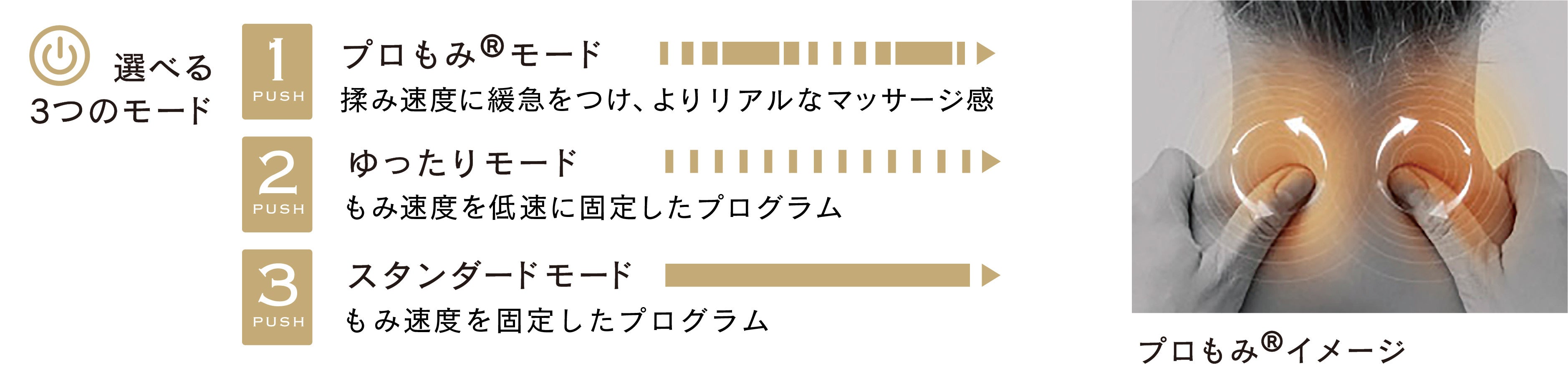POINT2:緩急をつけた「プロもみ®」など3つのモード搭載