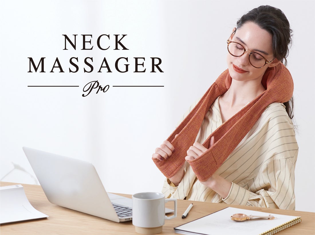 PC、スマホで首や肩を酷使している現代人の筋肉の疲れをとる、コンパクトな「ルルド ネックマッサージャー プロ」人気の3色で発売