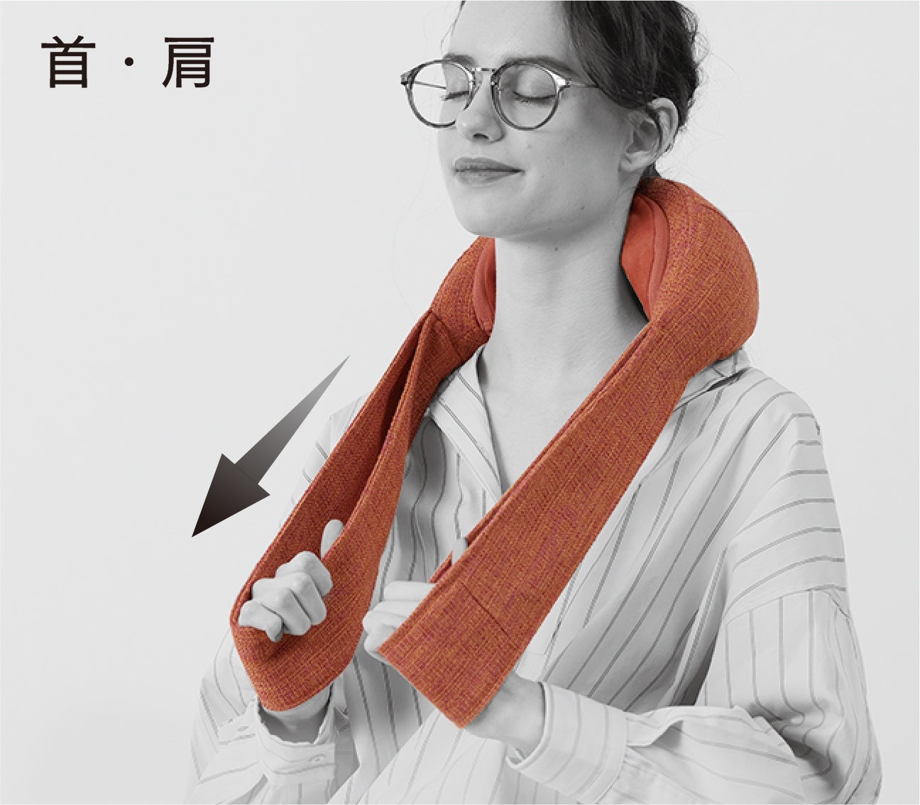 上下に配置された4つのもみ玉は指のような形状をしており、つかむような体感を追求。これにより、しっかりと首筋をつかんでもみほぐすことが可能になりました。さらに、上下のもみ玉の回転をシンクロさせることで、グッと首筋をつかむようなもみ心地を追求。首コリ・肩コリの重要なポイントにアプローチします。本体の上下を入れ替えることでもみ上げ・もみ下げをチェンジでき、コリを的確にとらえてマッサージします。