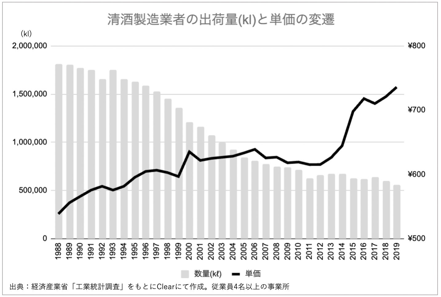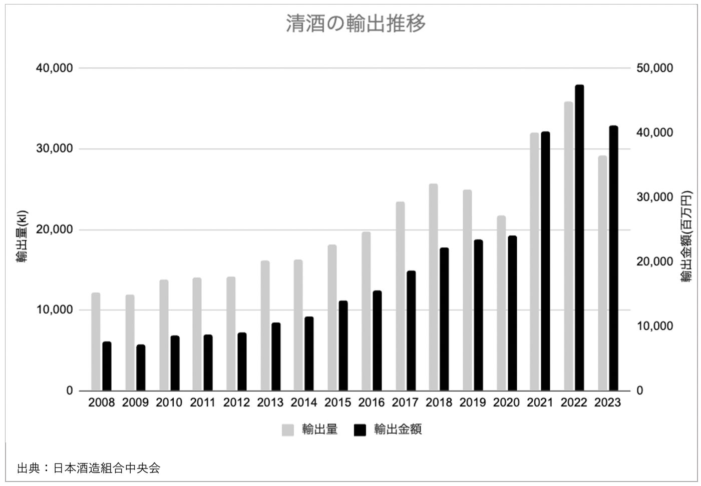 「SAKETIMES」が創業してからの10年間で、日本酒業界もさまざまに変化しました。国内の消費量は下がる一方高価格化が進み、海外輸出は10年で約4倍になりました。