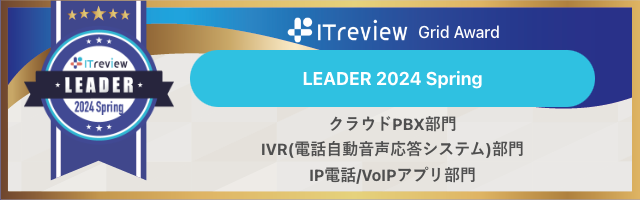 「トビラフォン Cloud」は、「ITreview Grid Award 2024 Spring」のクラウドPBX部門、IVR(電話自動音声応答システム)部門、IP電話/VoIPアプリ部門の3部門で、最高位の「Leader」を受賞しました。3部門での「Leader」獲得は今回で9期連続となります。