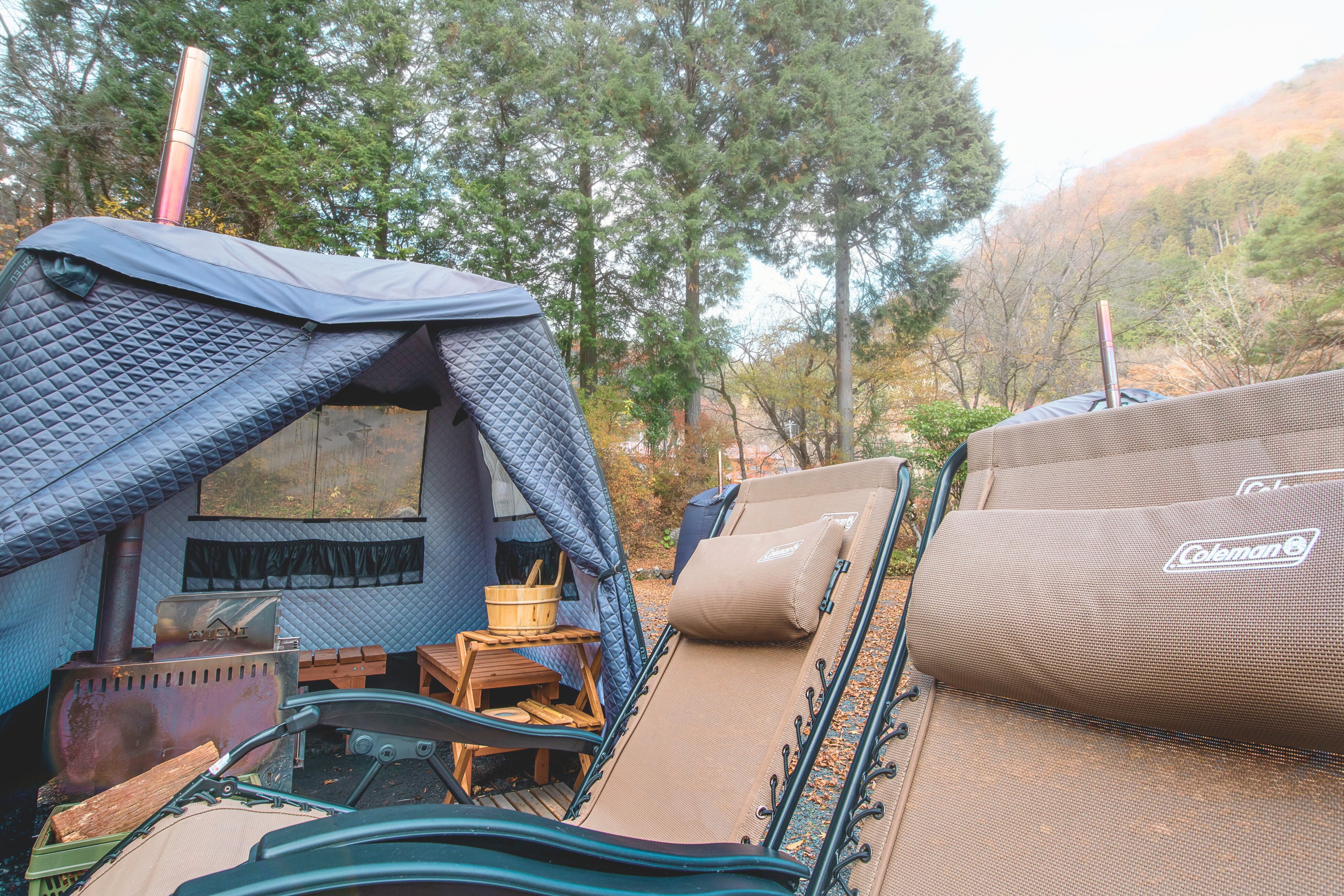 三瀬のみどりの中でカラダもココロも『ととのう』体験をお楽しみいただけるよう、1日2組限定で7月26日(水)よりテントサウナ体験を開始しました。お好きな香りのアロマウォーターで、セルフロウリュを行えば、テント内はたちまち100℃まで上昇。体を芯からしっかりとあたため、三瀬の冷たい地下水や、ひんやりとした心地よい風の外気浴で、自然に囲まれたアウトドアでのととのいをお楽しみください。